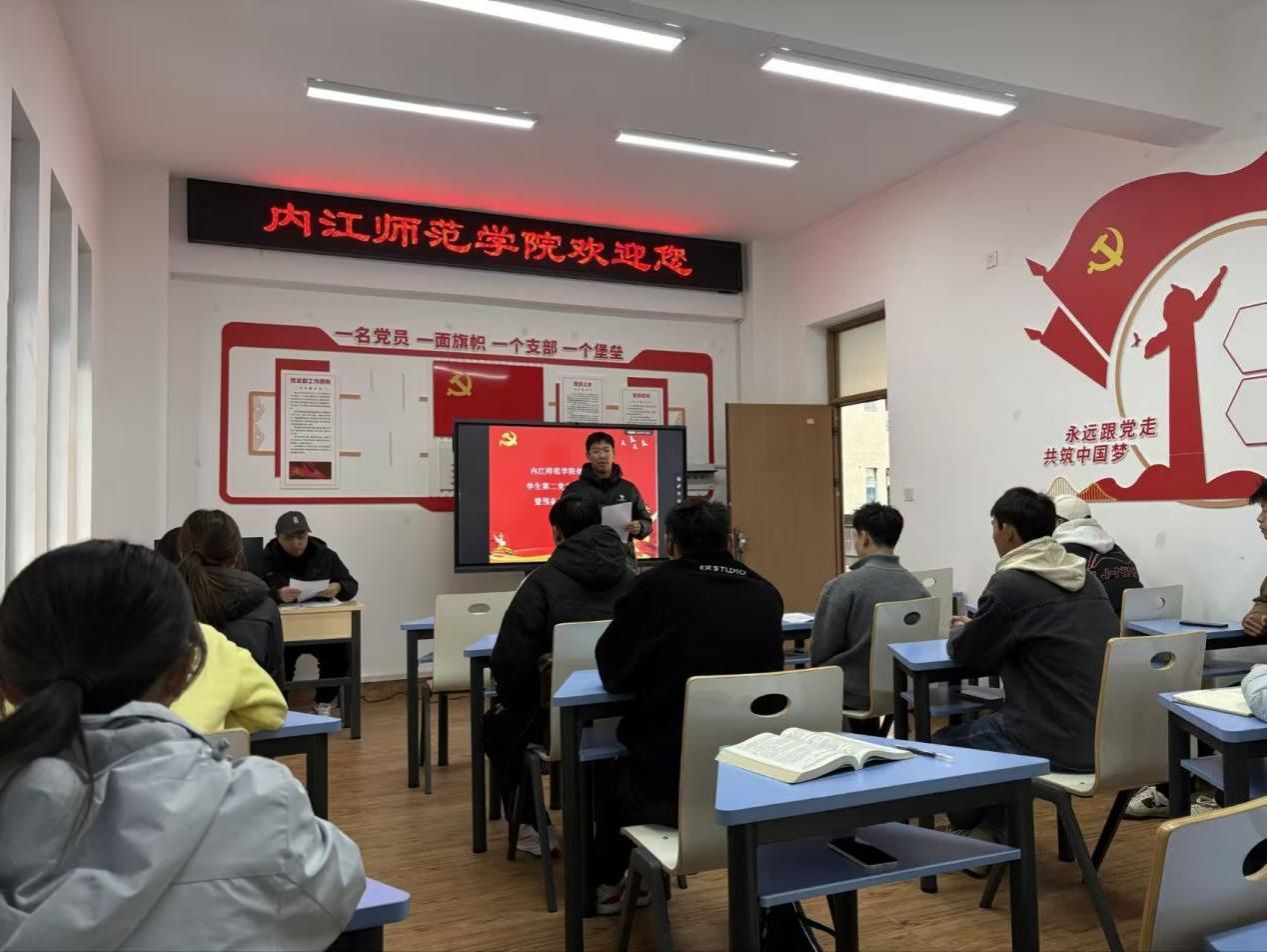在预备党员转正环节,徐正杨等 2 名预备党员重点汇报了预备期间在员工社区中的思想成长与实践成效:包括参与社区党建活动室建设、红色文化宣讲、“三走” 体育健身活动组织、困难同学结对帮扶等工作情况,深刻剖析了自身不足与改进方向。入党介绍人客观评价了其预备期间的表现,肯定了他们在社区育人中主动担当、积极作为的责任意识;支部书记王应代表支委会报告审查意见,认为 2 名同志在预备期间严格履行党员义务,深度参与 “一站式” 员工社区建设相关工作,思想觉悟与服务能力显著提升,符合转正条件。经与会党员深入讨论和无记名投票表决,大会一致同意徐正杨等 2 名同志按期转为中共正式党员。
