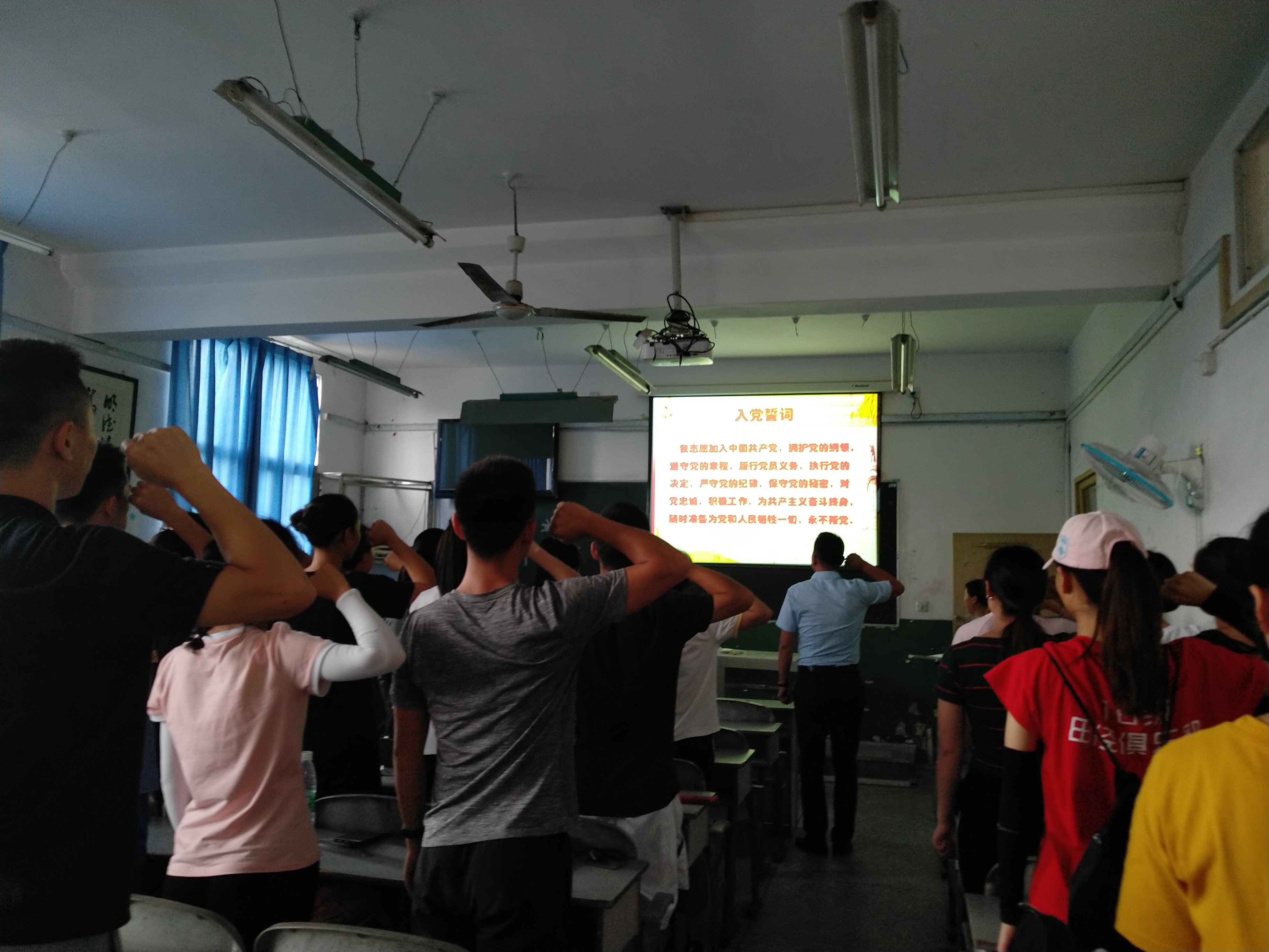 “我志愿加入中国共产党,拥护党的纲领,遵守党的章程……”35名党员同学举起右手庄严宣誓,通过宣誓,增强党性观念,增强党员的历史使命感和社会责任感,激励每一位党员以党章规范自己的言行,牢记党的宗旨,履行党员义务,做一名称职的、合格的,无悔于党员称号、无悔于入党誓词的一名真正的共产党员。