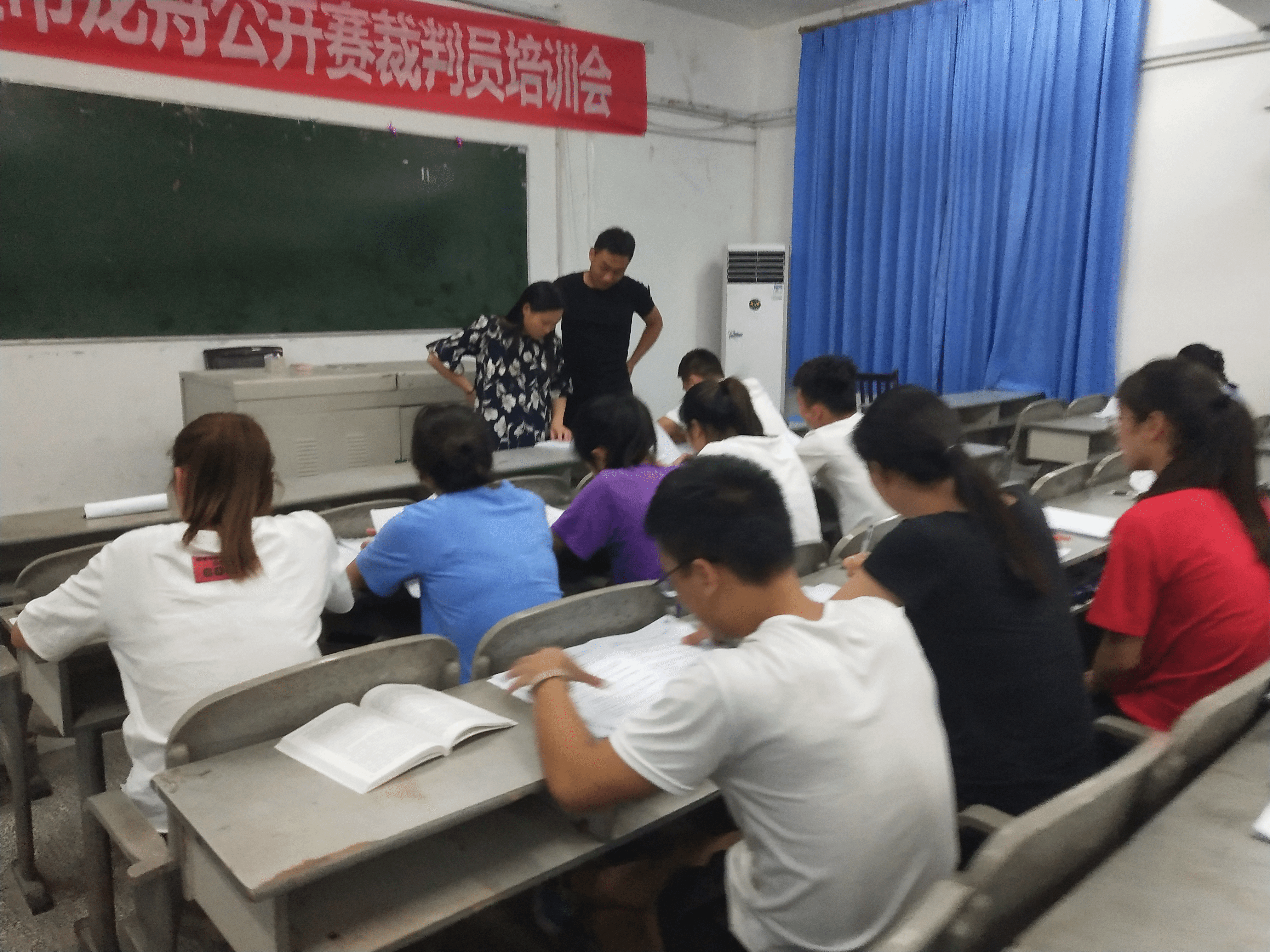 会议第二项,复习与抽查。抽查前,积极分子们有30分钟复习资料时间,随后再根据资料内容进行抽查。复习期间,每个积极分子都专注于手上的资料分秒必争。半小时后,由李春雨对积极分子们进行逐个抽查,基本了解了每个积极分子的复习情况。