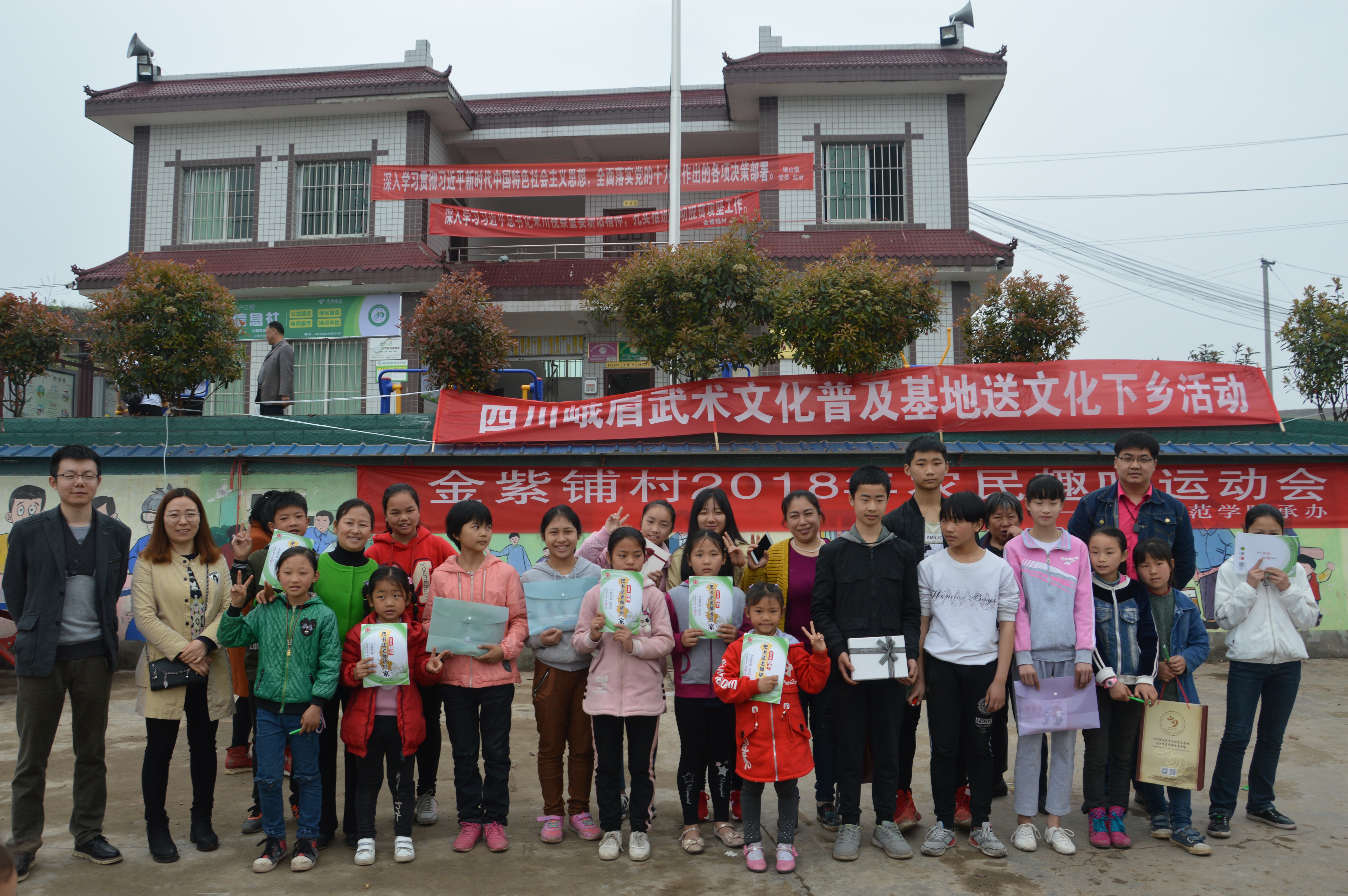 活动第一项:峨眉养生操—健身气功,由公司邢程老师对峨眉武术文化进行了宣讲,同时介绍了峨眉武术养身功法的由来、特色以及健身功效。之后邢老师亲自带领在场的村民体会健身气功舒经活血的功效,村民们都踊跃参与,表现出极大的热情。养生操结束后,邢老师为村民派发了相关书籍。