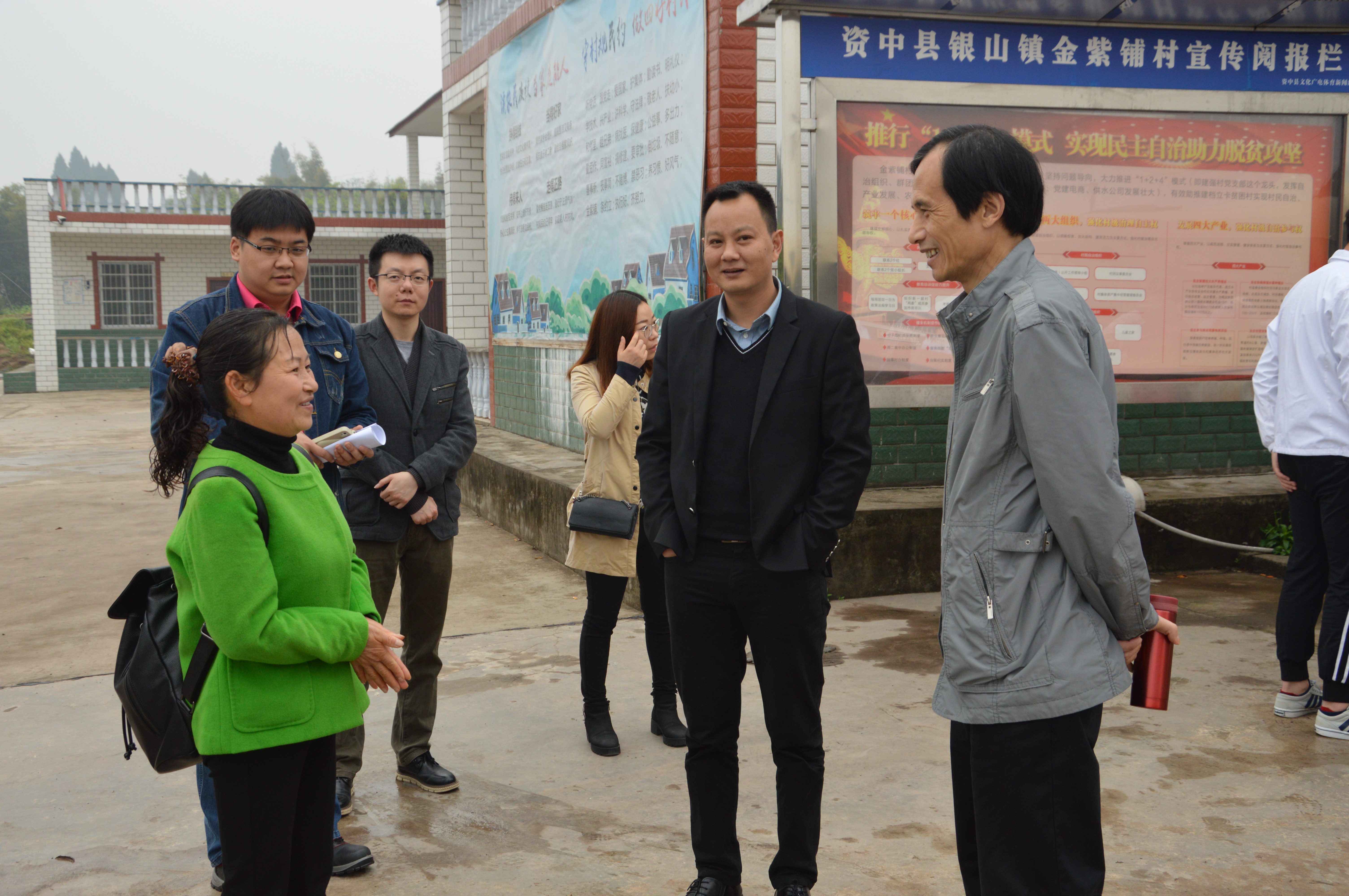 随着一支欢快活泼的健美操之后,开始活动第二项:首先由该村第一书记罗超发言:此次活动不仅能有效了解本村村户的实际贫困情况,也丰富了村民的生活,同时罗书记对公司多年来给予的帮扶支持表示了衷心的感谢。随后,由公司党总支书记冯亚平与当地党支部书记孙先金共同为村徽揭牌。公司党总支副书记李才宝为当地村委会主任吴刚授旗。