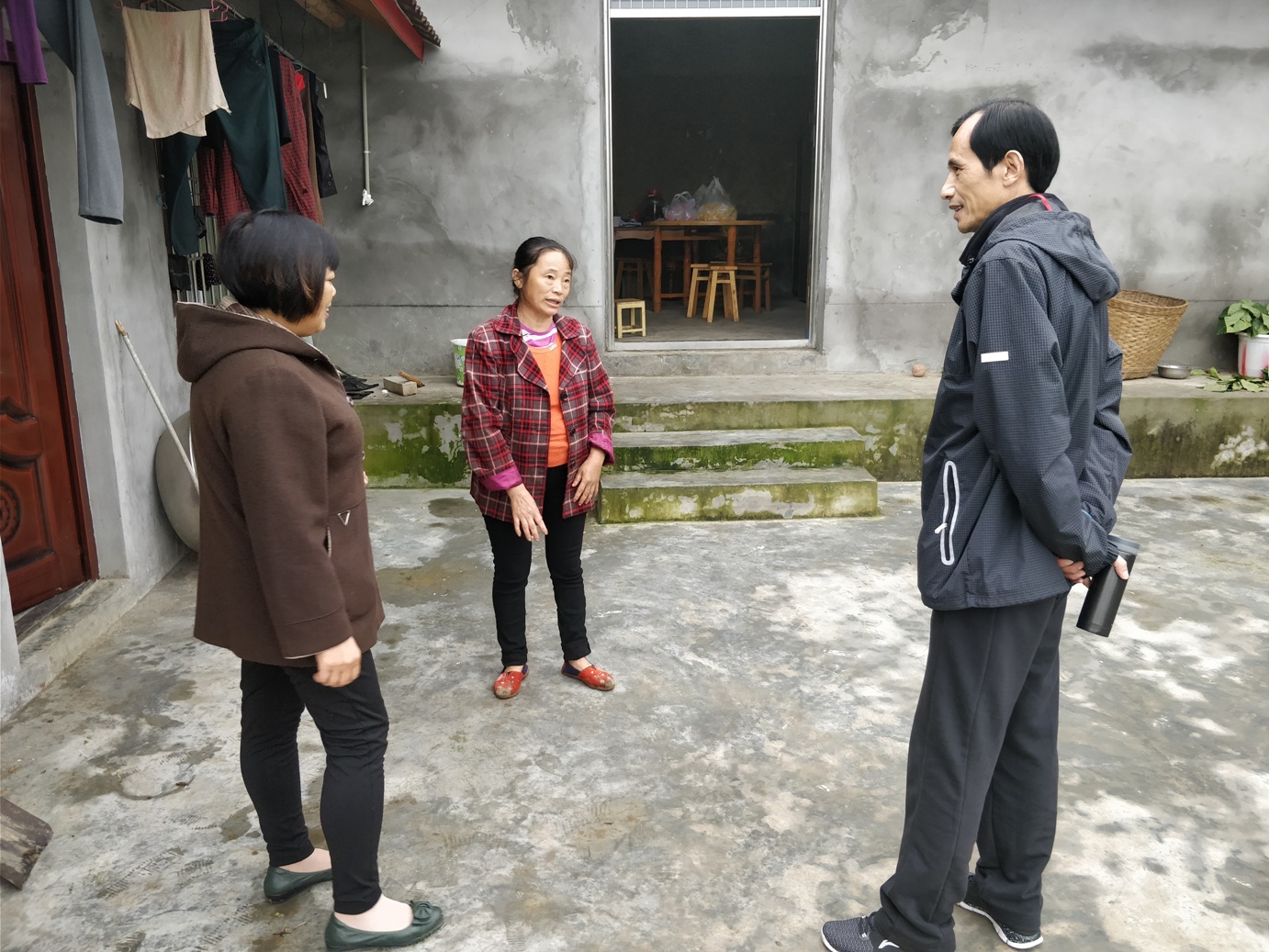 随后,党总支成员来到村委会,并在驻村干部胡翔和村支书钟素花的陪同下,来到位于金紫村6社贫困户舒能金的家中进行走访,并给其妻子唐贵容送去了慰问水果。党组成员和驻村干部以及村支书亲切的与唐贵容进行了交谈,并详细询问了家庭的收入情况,生活近况以及有哪些方面的困难等,之后又给舒能金一家发放了慰问金,鼓励他们要树立信心,通过公司的精准扶贫项目的帮助和自身的努力,脱贫致富,让生活变得更加美好。