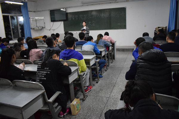 冯书记首先对积极向党组织靠拢的82名积极分子表示诚挚的祝贺和热烈的欢迎,同时结合以往学习实际,指出其中存在的问题,提醒各位同学避免出现类似不良行为。冯书记重点就“作为一名入党积极分子应该如何做”这个问题向同学们强调了三个方面的内容,一是树立正确的入党动机,努力做到思想上入党;二是提高工作创新能力,努力做到工作上入党;三是加强思想道德建设,努力做到从生活上入党。他讲到:要充分利用有限时间,认真系统的学习党的基本知识、法规、政策、理论,严格按党章要求,认真履行党员职责,争取早日加入到党的队伍中来。接着,罗冬丽老师就培训相关事宜作了介绍,最后由党校班班长胡丽莎同学就具体培训时间、上课地点、培训要求向大家进行了详细说明。