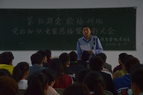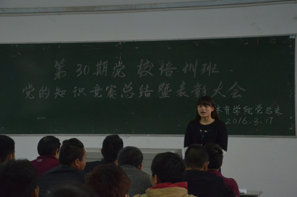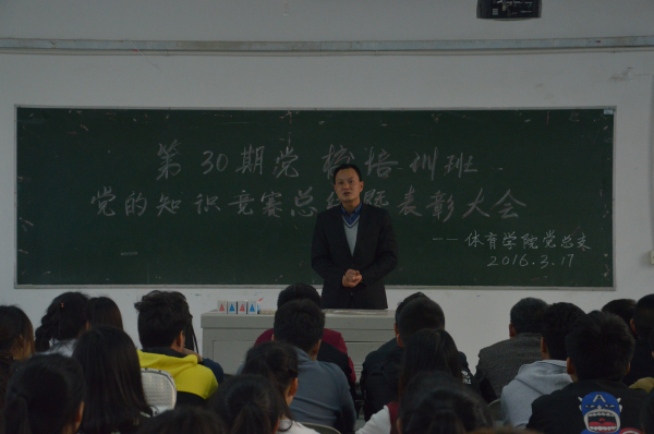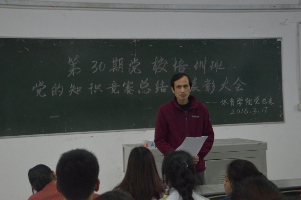 3月17日下午6时,K1体育第30期党校培训班知识竞赛总结暨表彰大会在K1体育101教室召开,,120名党校培训学员参加大会,大会由马学明老师主持。冯亚平,李才宝,罗冬丽、邓艳梅、付学兵出席本次大会。
