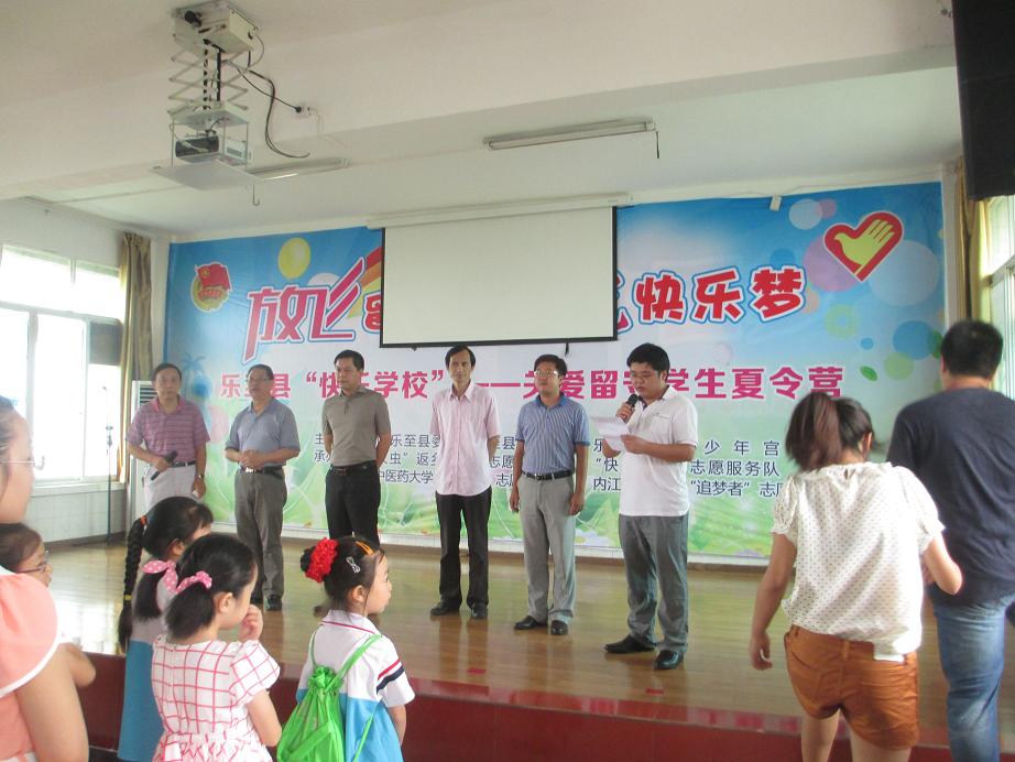 16日下午冯书记和马学明老师来到共青团乐至县委,与当地团委主要负责人进行工作上的交流,17日上午,两位老师出席了由关爱留守员工夏令营启动仪式,冯书记还为志愿者代表授旗,鼓励老员工志愿者要为当地做好服务,在实践中提升自己得使命感,锻炼自己的才能。