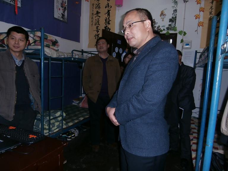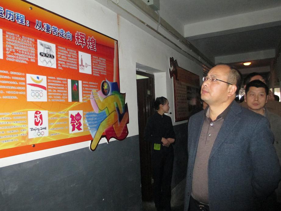 在礼仪的引导下,高书记一行参观了“传统文化长廊”。 “传统文化长廊”由2012级20间寝室组成,同学们充分发挥自主能动性,围绕传统文化、传统美德、现代社交礼仪、体坛励志四大主题进行“一室一品一主题”进行装扮设计。传统文化长廊内容丰富,装扮多样,其中“聚闲客栈”、“武林”、“梅兰竹菊”、“水墨画”等寝室别具特色、装扮新颖,充分展示公司学子为陶冶自身情操,升华自身文化涵养所作出的努力。来到507-“武林”寝室,室长为大家详细介绍该寝室的设计理念与风格,高书记在听完室长的讲解后,给予了高度的评价,并赞扬同学们的创作能力与动手能力。随行的其他领导、老师也表示20间寝室各具特色,充分展示着中国传统文化的内涵。参观过程中,高书记也询问同学们对此次系列活动的看法,同学们均表示:自己在活动中不仅提高对中国传统文化的认识,而且提升文化修养,增强综合素养,自己也是受益终身。