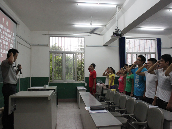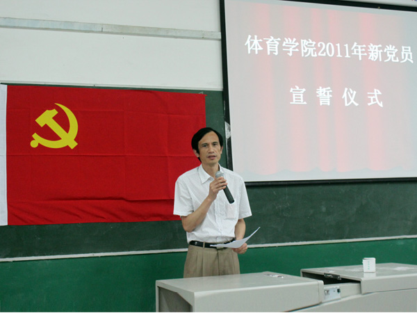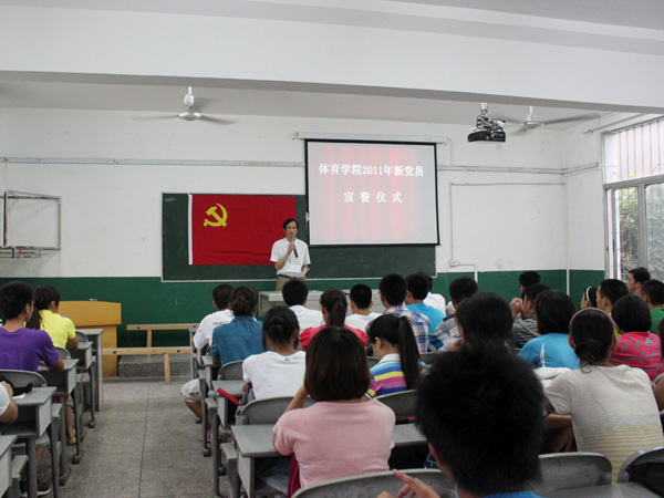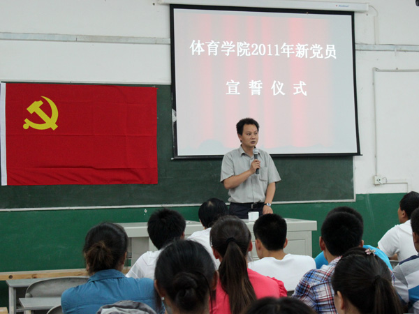 在建党90周年之际,为了加强新党员的党性觉悟,6月13日下午5:30,公司在六教101教室,举行2011年新党员入党宣誓大会。 公司党总支书记冯亚平,副书记李才宝,团总支副书记马学明老师、辅导员刘擎、罗冬丽老师以及全体新发展员工预备党员和新转正的员工党员参加此次活动。