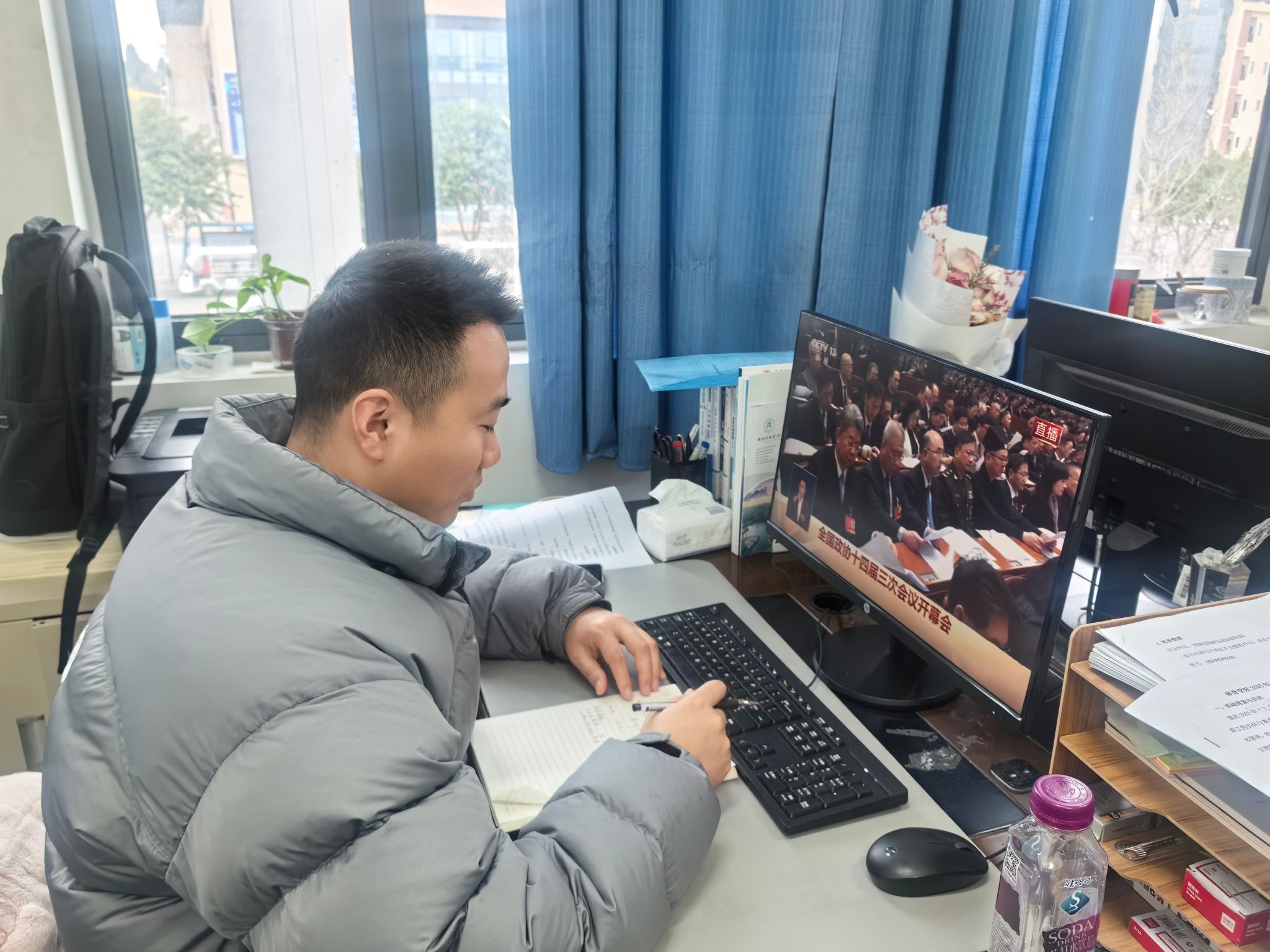 全国政协十四届三次会议和十四届全国人大三次会议分别于3月4日、5日在北京人民大会堂隆重开幕。K1体育师生通过多种形式收听收看大会盛况,认真学习两会精神,聚焦两会相关热点,结合自身工作学习开展热切讨论。