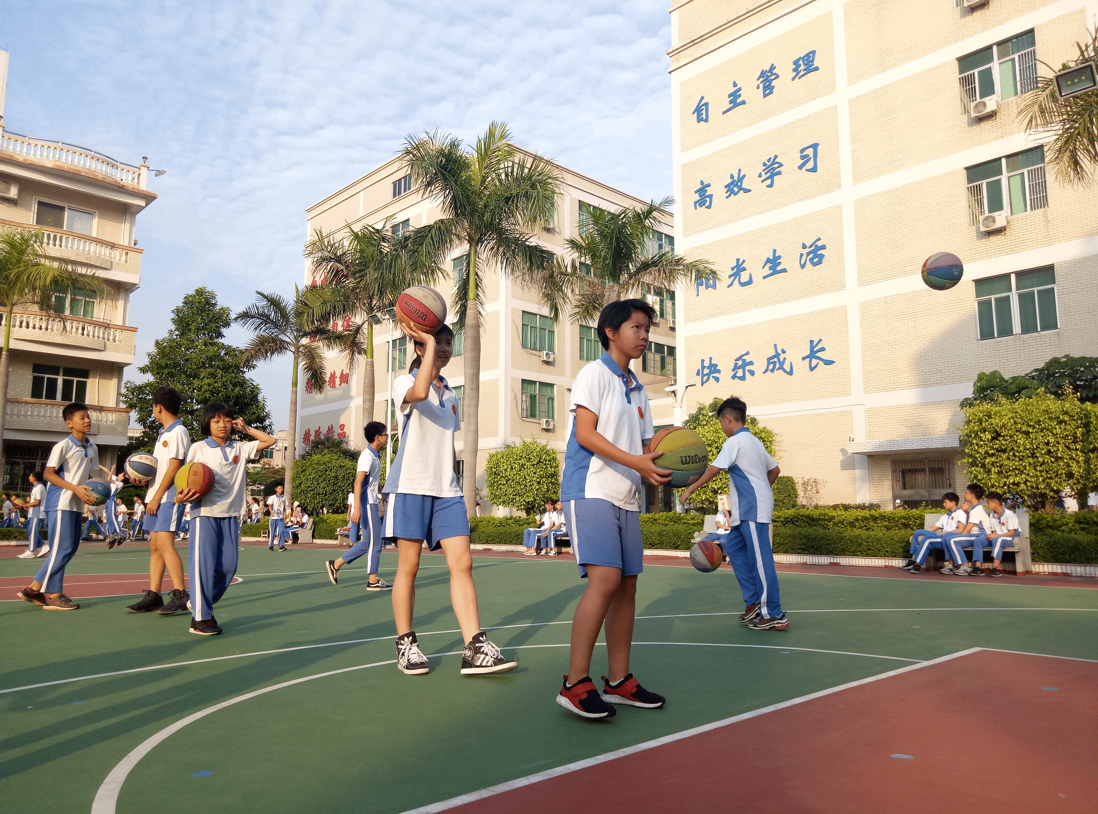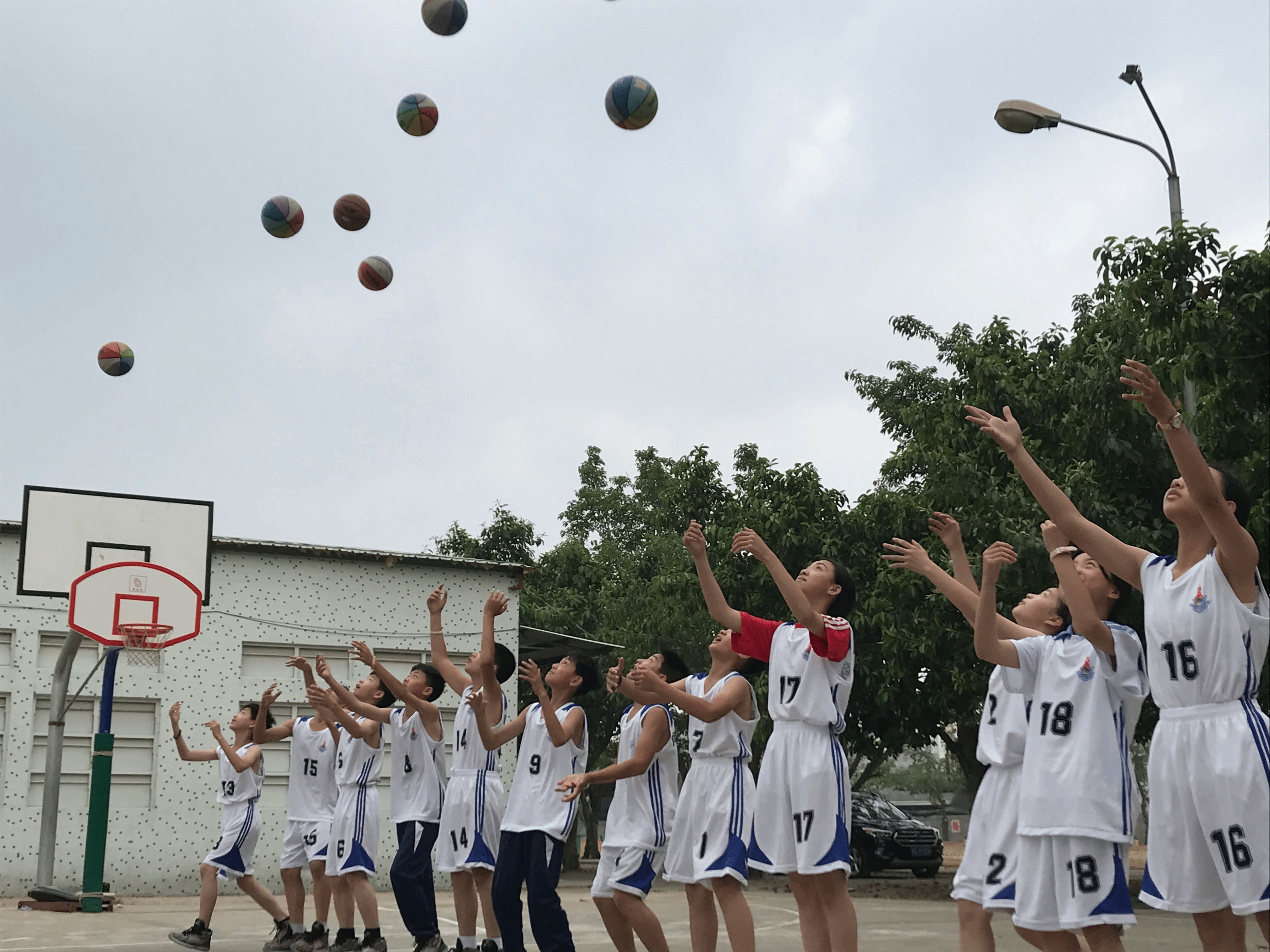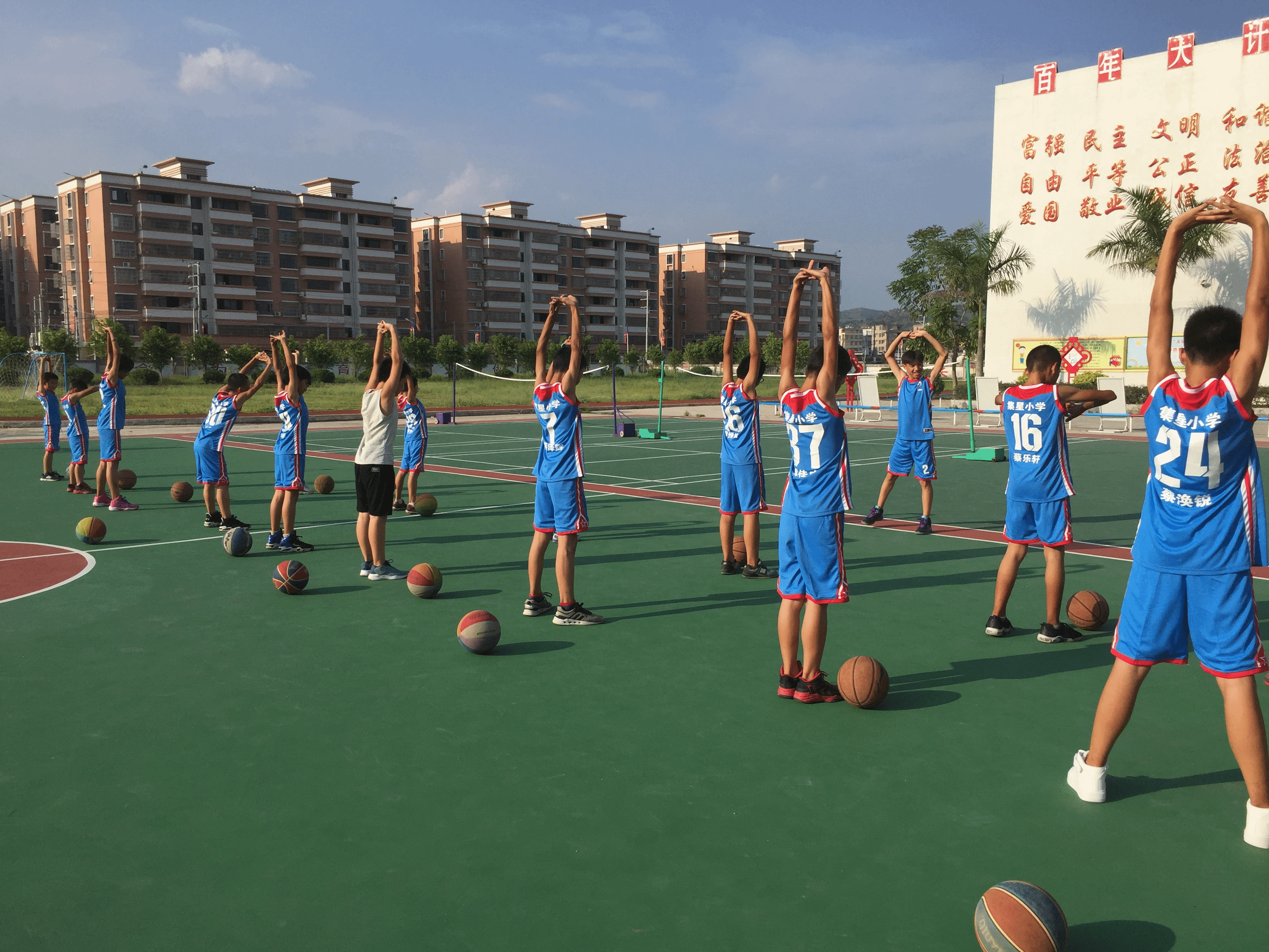 火辣辣的太阳炙烤着大地,炙烤着每个人脸庞,但这依旧不能削减孩子们对篮球课的热情,烈日下奔跑的他们有着最夺目的光芒。