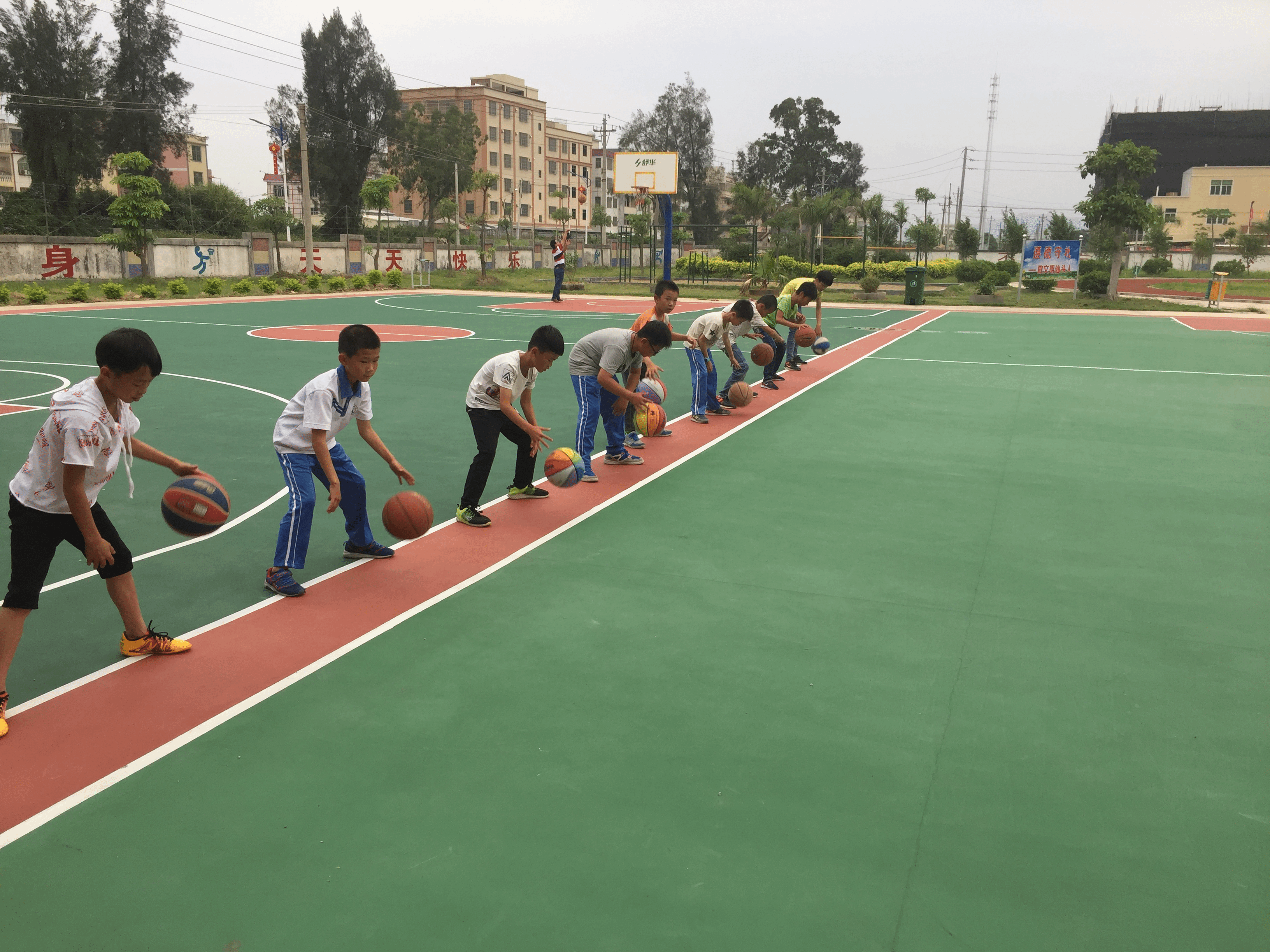 同样在广州汕头支教的许世佳说:“今天是支教以来天气最热的一天,室外气温达到了35度。但这丝毫没有影响到小球员们的训练热情,顶着烈日在操场上挥汗如雨的他们依然精神矍铄,原地高低运球和行进间运球的训练交替进行,他们被汗水打湿的笑容格外动人。他们的表现仿佛看到了当年第一次接触篮球的自己,所幸我不仅将对篮球的那份热爱保持了下来,还有如此机会得以把这份感情传递下去。”