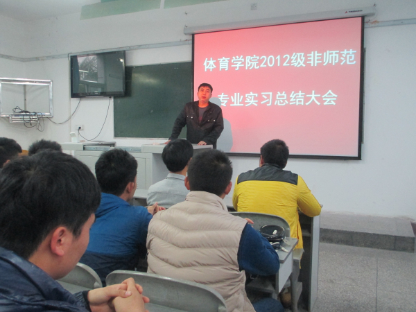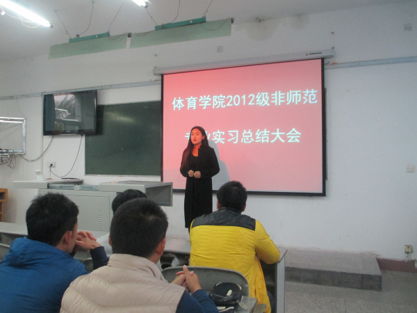 专业实习是老员工必修课程之一,是老员工初步了解社会,了解职业的重要途径。2015年11月24日上午9点,2012级社会体育专业和表演专业实习总结大会在6教201举行。