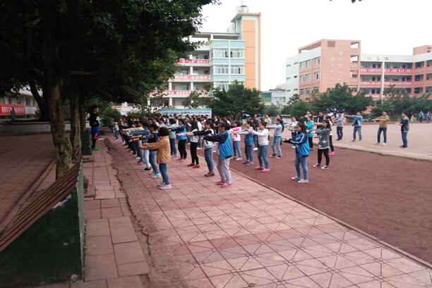 同学们怀着愉悦的心情再次来到了内江三中,急急忙忙的赶到田径场,看到一个个体育老师都做好了上课的准备,上课的同学也是早早的来到了操场上,在他们身上可以看出那种积极、向上的青春活力。开始上课了,老师喊口令,复习公司自编的健身操,老师采用分组练习法,便于观察,对动作不熟、不协调、的同学加以纠正。健身操后又开展游戏环节,目的是为了让员工放松,同时也是为了促进师生之间的交流与沟通。