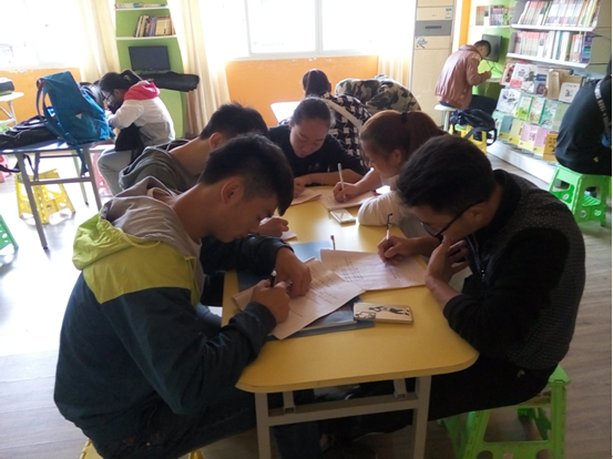 见习生在办公室认真填写见习手册