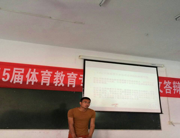 4月28日上午10:00,2015届体育教育本科员工毕业论文答辩会在六教101教室举行。论文答辩会由谭伟平教授主持,部分指导教师和2015届体育教育专业同学参加了答辩会。