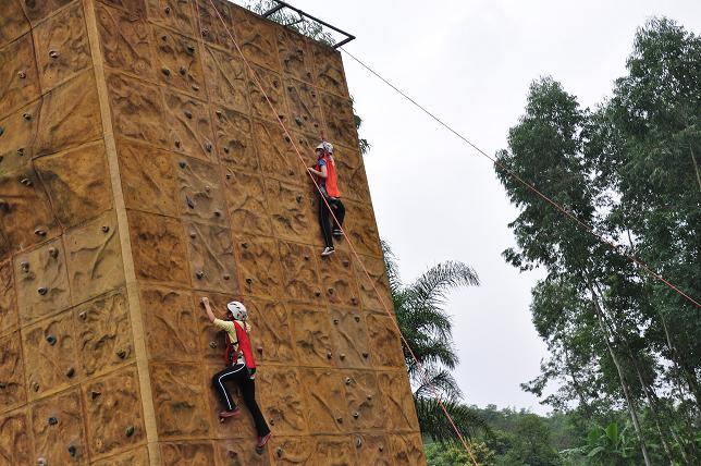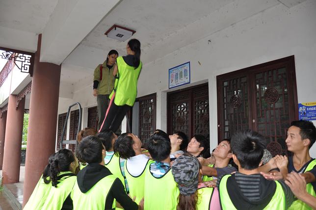 在随后的拓展训练中,同学们以小组形式先后体验了高空抓杠、空中断桥、信任背摔、攀岩、逃生墙等项目,让他们的身心得到了全方位的锻炼,磨练了意志,促进了交流,熔炼了团队,懂得了团结协作的真谛和意义。