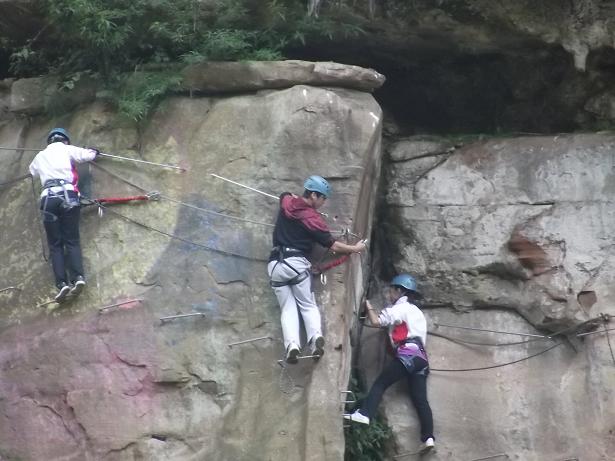 17日清晨,老师和同学们一行62人出发来到邛崃,先参观了平乐古镇,随后分成两个组分别到天台山和金鸡谷攀岩基地考察学习。天台山的美景让大家充分体验到大自然的魅力,同时也深感环境保护的重要性,而金鸡谷攀岩更是使大家的身心得到了充分锻炼,并将同学之间的友谊互助精神和团队精神体现得淋漓尽致。