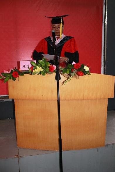 仪式上,冯亚平书记作了热情洋溢的欢送辞。他向圆满完成学业的毕业生表示了热烈的祝贺,向付出辛勤汗水的全体教职工表示了崇高的敬意。他殷切希望2012届毕业生能树立终身学习的观念,学会学习、善于学习,说真话、干实事,大胆自信、满怀热忱地投入崭新的生活,在长期的工作实践中不断砥砺身心、激励自我、锻炼成才!