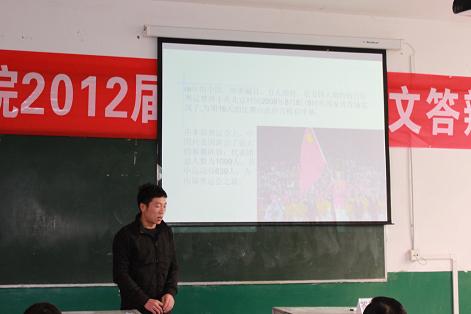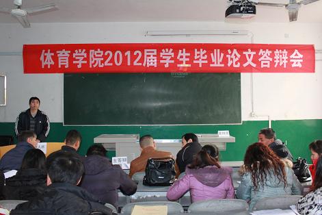 2011年12月29日下午15:00,2012届体育教育专业本科毕业论文答辩会在六教101教室举行,K1体育答辩委员会由王斌教授担任主席,20位论文指导老师担任答辩委员,论文答辩会由谭伟平教授主持。