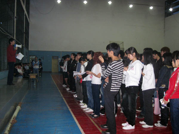 5月11日晚7点,体能测试动员大会在篮球馆如期举行。K1体育副经理徐武,团总支书记李才宝出席了大会,各二级公司教学班班长、体育委员参加了动员大会。