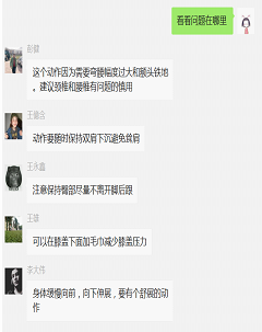 (8)按课表安排,按时授课,对于学习过程中有员工提出问题,及时进行反馈解答,对于遇到的技术动作学习上的困难进行拍摄视频分解教学。