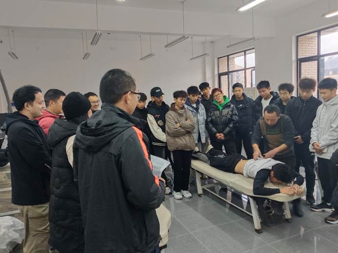 首先,谢老师对员工进行10分钟的身体素质练习,主要包括马步练习与呼吸练习。接着,讲解摩擦及推压的操作要领及作用。然后,找了一名同学示范摩擦及推压的手法。最后,进行分组练习,督促每位同学进行手法实操,并纠正错误动作。