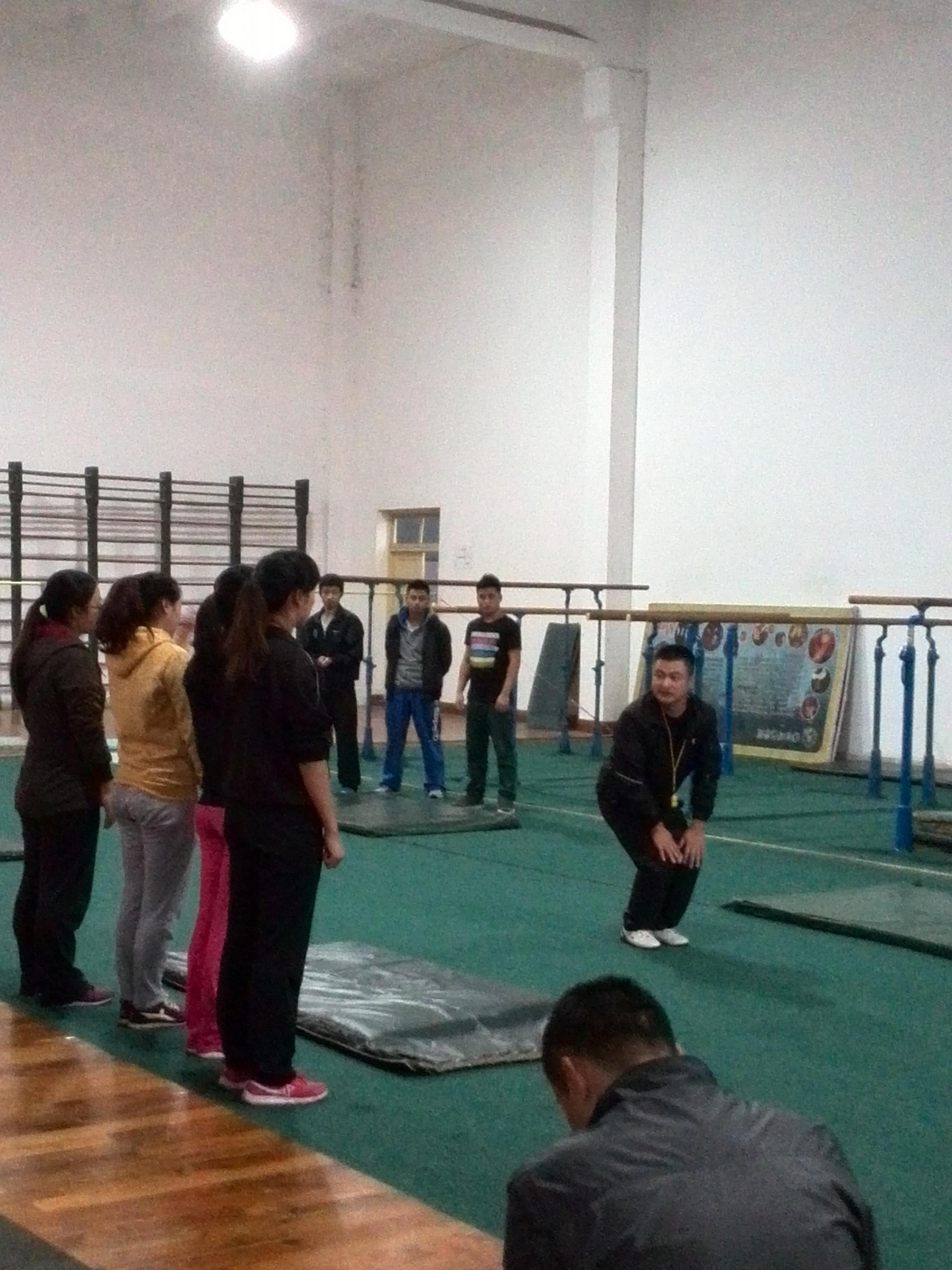 10月29日,国培学员王树蓉、李高建分别进行了水平一和水平二的立定跳远和前滚翻教学展示。