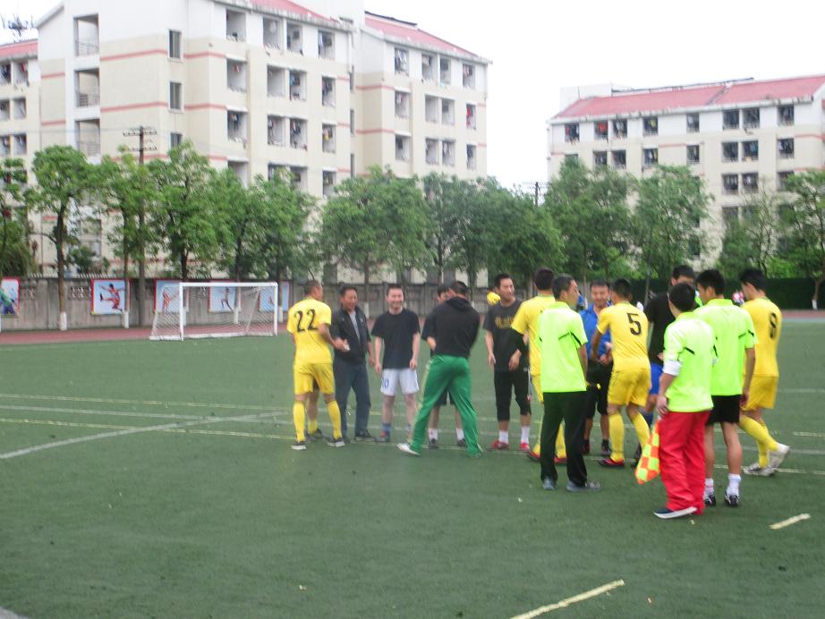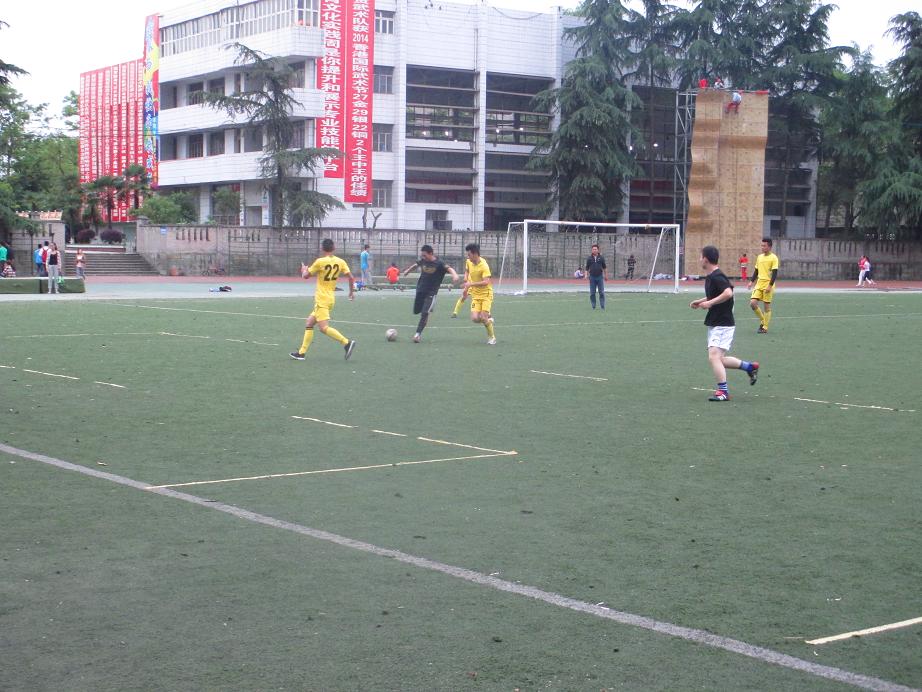 4月28日,13级4班代表队与体院公司教工队在西区田径场进行了足球比赛,迎来了老师与同学之间的一次亲密接触;随着裁判的一声哨响,足球比赛在田径场如火如荼的开始了。从比赛开始就以看出,两队的实力还是有一定差距的。教工队实力略胜一筹,但13级4班代表队也在奋力拼搏。在上半场的比赛中,两队都展开了自己的猛烈进攻,球员们也都展现着自己的优势。下半场的比赛在夜幕的降临中继续进行着,但这并不影响队员们比赛的热情,反而使他们越战越勇。到了比赛的最后,双方各不相让,进攻,防守,你来我往,精彩纷呈。场外的观众也热情洋溢,纵情地为运动员们加油叫好,现场气氛十分热烈。经过一个小时的精彩角逐,最终,体院公司教工队以微弱的优势5:4险胜13级4班代表队,比赛圆满结束。
