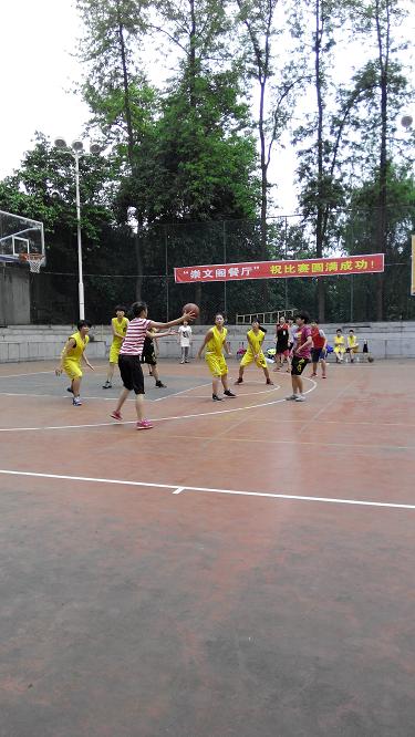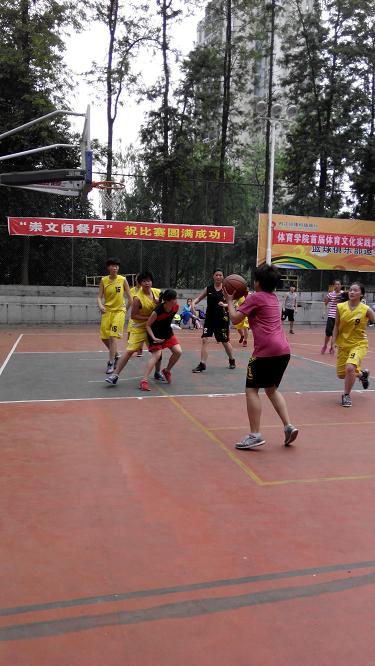 4点30分,K1体育女子篮球队与内江二中女子篮球队的友谊赛在灯光球场进行。比赛一开始,双方竞争就很激烈,K1体育的队员8号把篮球打了过来,另一名队员抢到篮球,立马运球过中场。因有另一名队员给她掩护,8号加快速度,像一匹脱缰的野马一样直捣黄龙,一下子就吸引了三名对手的包围夹击。她们高高跃起,试图盖过她的球。她临危不惧,用眼睛的余光扫视了一下四周,看见了另一名队员,便一个背后传球,把球传给了身处空位的一位队员,另一名接球后,一跃而起,球应声入篮。球一进,大家欢呼雀跃,击掌庆祝。没想到对手追着她们打,立刻发出界外球,趁她们不备打起了快攻。“快,快回防!”队员边回防,便大喊着。她们立刻回防,可对手已经冲到了篮下。忽然,一名队员