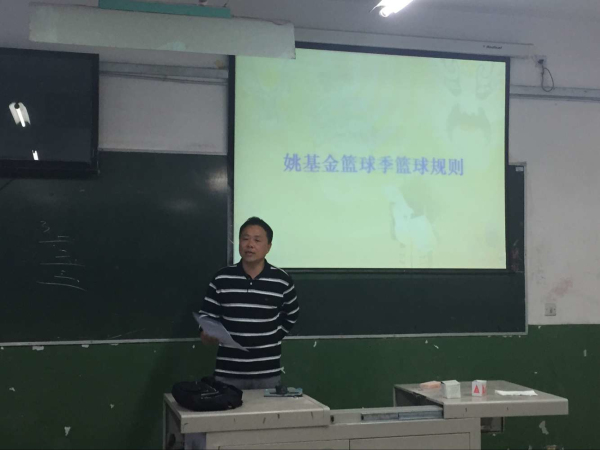4月24日晚7时,K1体育教师魏勇在六教201教室对2013级、2014级篮球专项班的员工进行了“2016姚基金希望小学篮球季”志愿者培训,培训课程为《姚基金篮球季规程》。