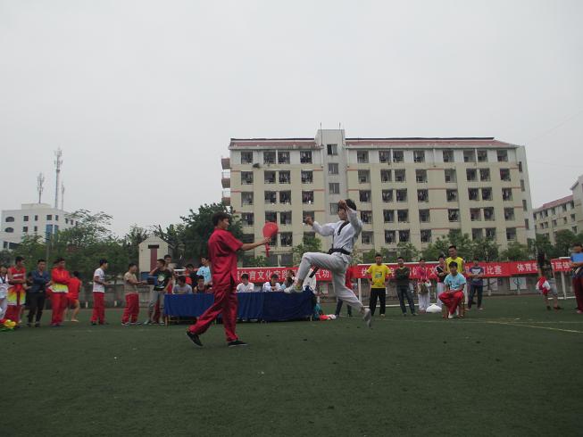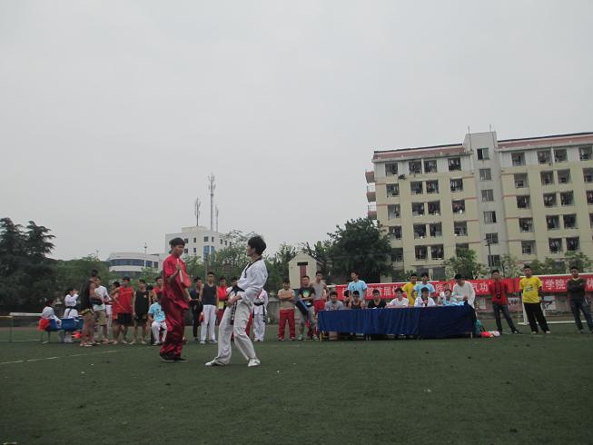 5月12日,跆拳道比赛在西区田径场举行;虽然天气比较炎热,但依然抵挡不了同学们热爱跆拳道的脚步。2:30分,比赛正式开始,每个参赛者都带了自己不同的节目,在比赛过程中,参赛队员在进行个人表演赛时,右脚向后蹬地,身体重心前移至左脚;右脚蹬地顺势屈膝提起,左脚以前脚掌为轴外旋约90度,同时,右腿迅速以膝关节为轴伸膝、送髋、顶髋,把小腿快速向前踢出,踢击目标后右腿迅速放松弹回,落回原地成左势实战姿势,动作一气呵成、非常完美;在进行表演赛时,参赛队员着装统一 、技术动作规范化、节目富有创意,参赛队员们积极投入到运动热潮中,彰显了当代员工的精神风貌。