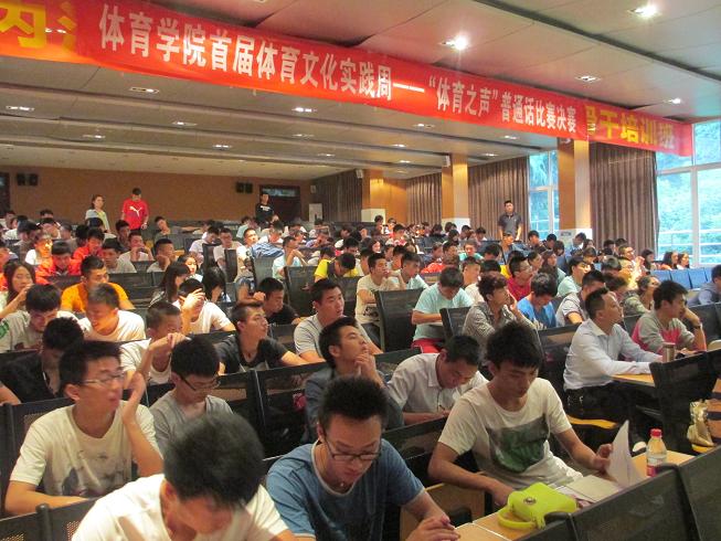 K1体育首届体育文化实践周体育专业理论项目内容的重要组成部分——“体育之声”普通话比赛有2011级、2012级、2013级在校员工参加,比赛分预赛、复赛、决赛三个阶段进行,经过前期广大师生的精心准备后,比赛4月20日拉开帷幕,复赛于4月27日举行,经过前两个阶段的激烈角逐后,共有15名同学进入到决赛。