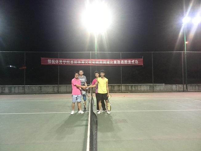 4月17日晚进行的是男单比赛与男双比赛,7点整,男单比赛正式开始,参赛队员有张安微、郑鹏、钟正方、韩科;裁判由段远毅、华翔宇两名同学担任;首先进行的是张安微与郑鹏之间的比赛,两人激烈的比赛场面给人以刺激、兴奋的感觉,潇洒、舒展的击球动作给人以美的享受;最后,张安微以6:3的成绩战胜了郑鹏。紧接着进行的是钟正方与韩科之间的比赛,比赛开始,韩科把球轻轻抛起、纵身一跳,打中了对方没防范的地方,首先取得了本场比赛的胜利;在全场比赛中,韩科在发球时引拍、挥拍、随拍动作一气呵成,带给观众舒适与愉快的感觉;最后取得了比赛的胜利;男单比赛结束后,进行的是男双比赛,由张超、郑鹏与王超、华翔宇进行比赛,杨箫雨担任裁判;在比赛时,张超与郑鹏两人配合的非常默契度非常的高,两人协调性较好、动作到位、发力准确、不论是接球还是发球都是非常的得心应手,最后以6:1的成绩战胜与对手取得胜利。