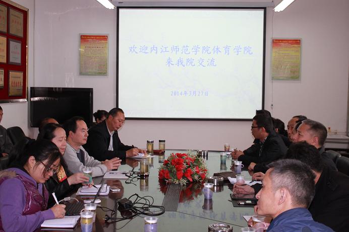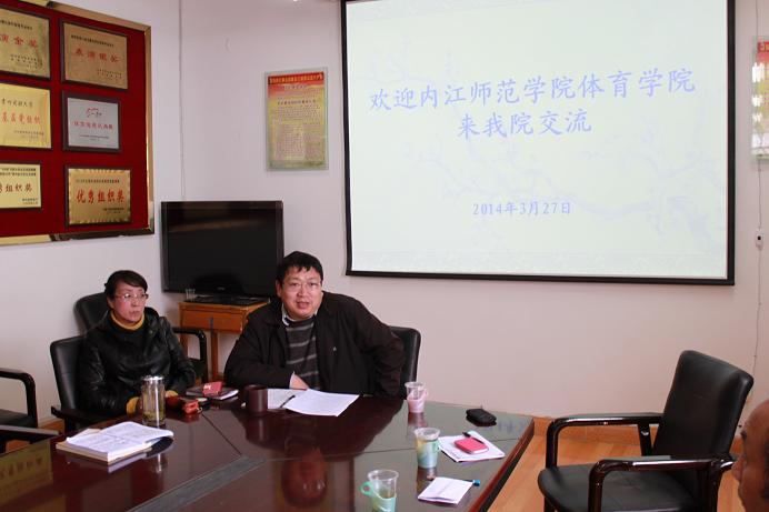 其后,冯亚平书记就本院的基本情况进行了简要的介绍,主要围绕团队、教学和科研等方面;徐武副经理就公司社会体育教学、员工社会实践和就业局势方面与院方交流并交换意见。