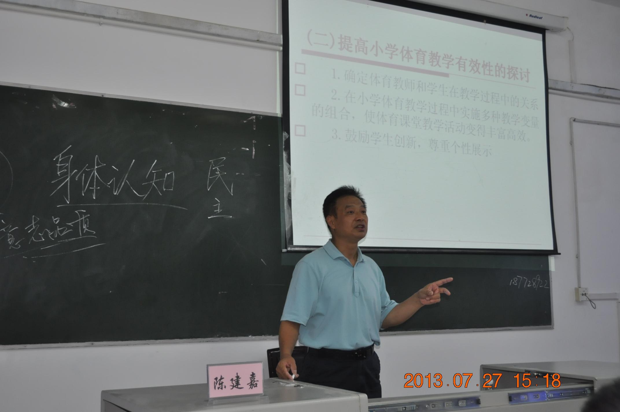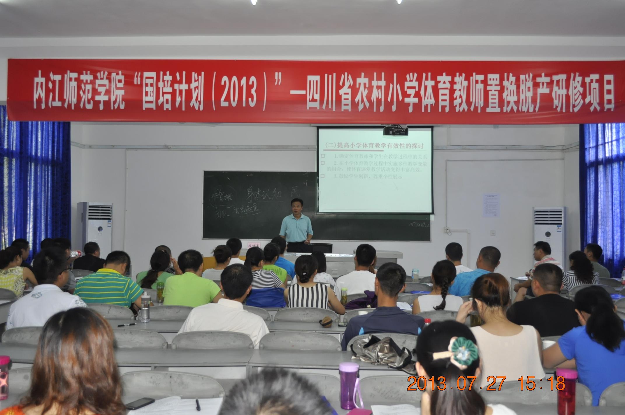 7月27日下午,四川师范大学K1体育教授、硕士生导师陈建嘉应邀为K1体育“国培计划(2013)”——四川省农村小学体育教师置换脱产研修班学员举行讲座。陈教授讲座的题目是《小学体育课堂教学有效性的策略探讨》。讲座由K1体育副经理、“国培计划”项目负责人谭伟平主持。公司党总支书记冯亚平全程听课。