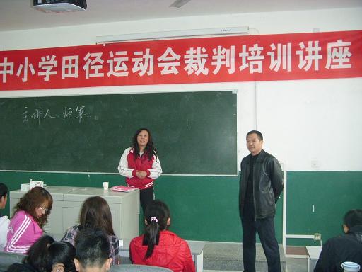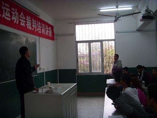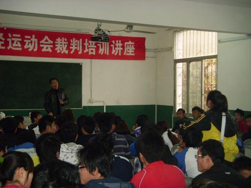 师军老师首先对担任此次运动会裁判的同学们表示祝贺,同时也对他们提出了几点要求:一是要严格执法,秉着严肃认真公正准确八字方针;二是要有时间观,要按时到场,不得缺席;三是形象观,具体是在执法过程中一定要注意细节,体现出一个裁判应有的良好形象。接着他用一些经典案例对裁判法和裁判规则进行了详细的讲解。最后他对同学们提出的有关裁判工作中可能出现的一些问题一一作答,让同学们受益匪浅。