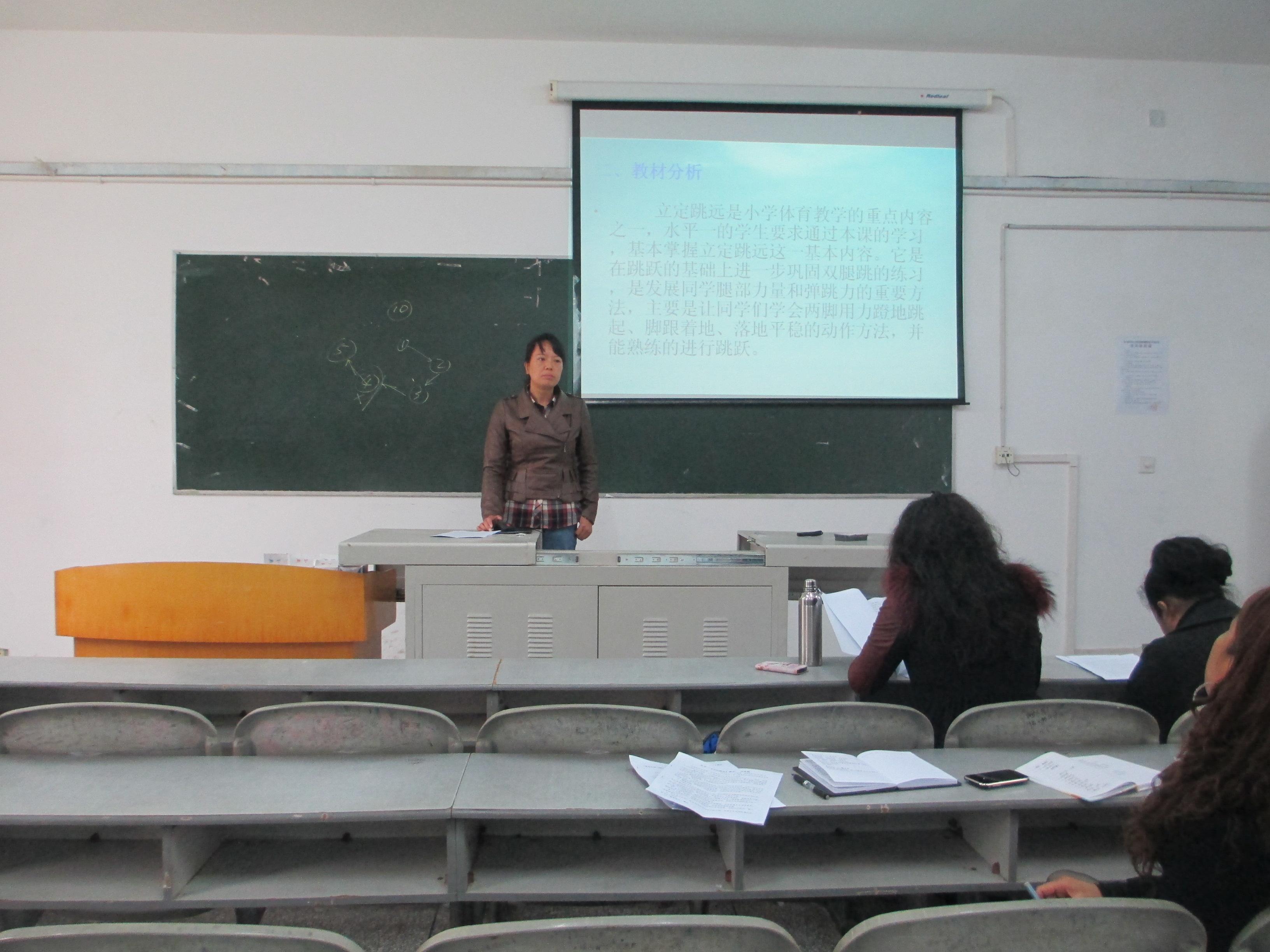 国培学员曾召侠以让员工们在身体练习中掌握体育锻炼的方法,培养员工的终身体育能力为教学目的,预设运动参与目标、运动技能目标、身体健康目标、心理健康目标、社会适应目标五大目标;采用了说教学方法、说学习方法、说教学过程的方式对水平二的立定跳远进行教学设计称述,并对场地器材与教学效果进行说明和分析;国培学员蒋晓英以前滚翻练习为主线,以主体参与为策略,以合作创新为核心,通过员工自学、自练、自评、自创的形式展开教学活动,在活动中发展协调、灵敏、柔韧等身体素质,培养员工的参与意识,创新精神的教学构想,采用了情景教学法和情绪激励法以及示范法、讲解法、练习法、展示法相结合的教学手段,将员工的学习由身心导入阶段、身心发展阶段、身心满足阶段、身心平缓阶段四个步骤带入教师上课的环节中,最大限度的满足员工心理上的需求,适当的利用员工生理状况进行了说课展示;国培学员王树蓉就发展员工腿部力量和弹跳力进行了说课展示,以让员工学会两腿用力蹬地跳起、脚跟着地、落地平稳的动作方法,并能熟练的进行跳跃,掌握立定跳远的技术动作为说课主题。采用