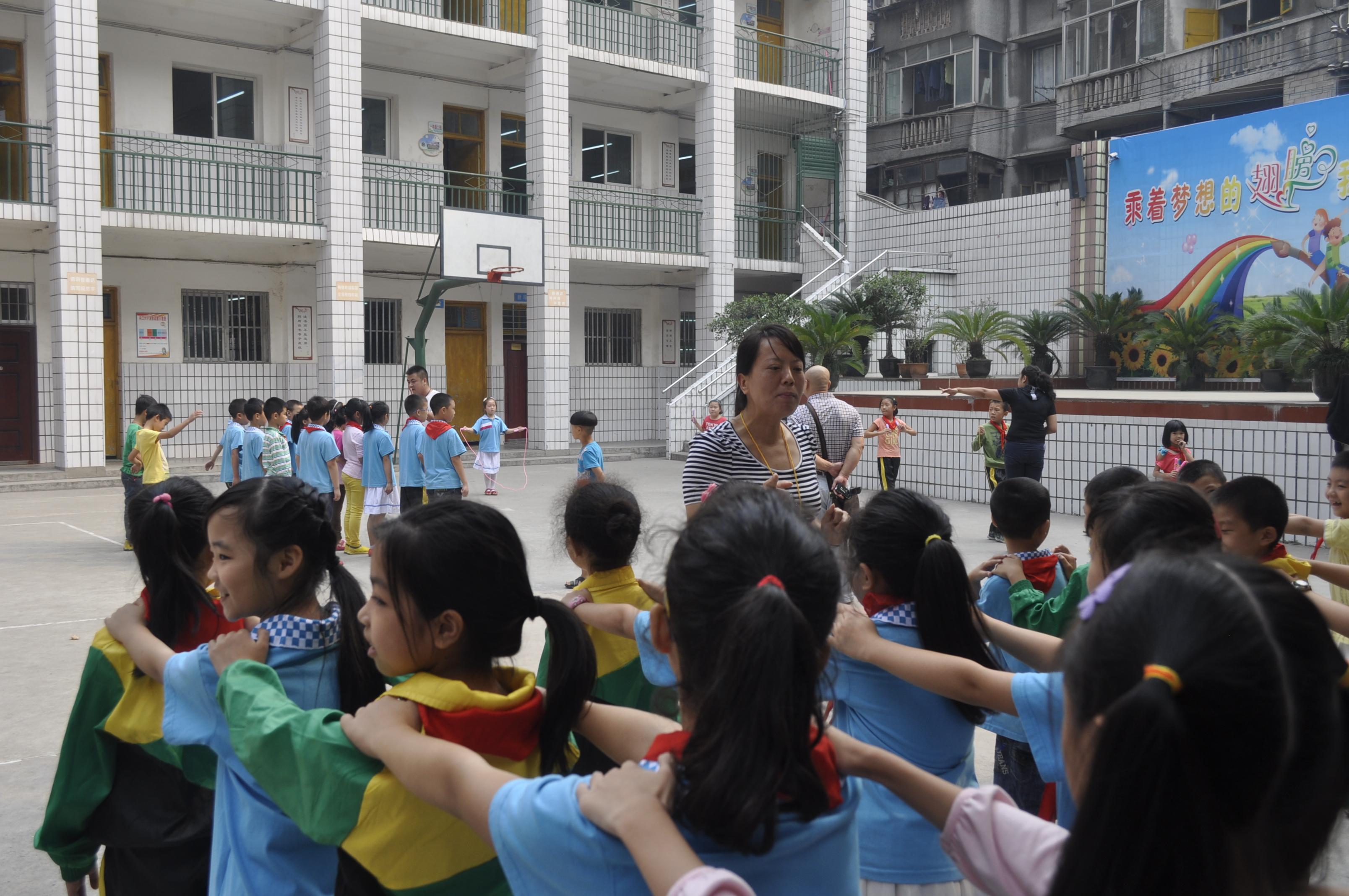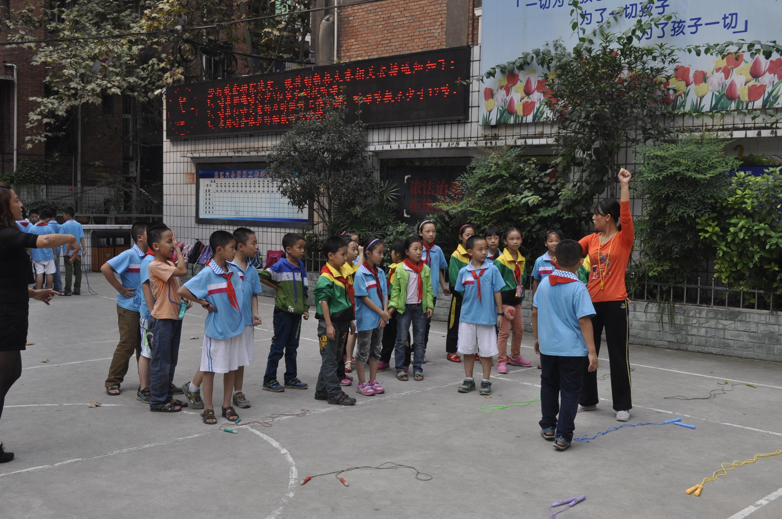 10月15日上午,阳光明媚,微风和煦,“国培计划(2013)”四川省农村小学体育教师置换脱产研修项目第五、七和八组学员在国培导师唐丽萍、申向军、周勇、杨忠建、林建老师的带领下,一行20人到内江六小开展“影子跟岗”授课实践活动。