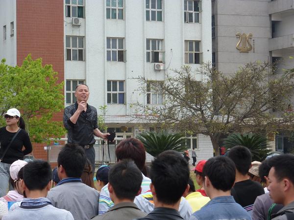 随后,一中政教处处长王殿荣从自身多年的体育教学工作经验出发,告诫全体参加实践活动的同学要发挥体育人不怕苦、不怕累、不怕脏、顽强拼搏、刻苦创新的精神,建议同学们认真学习并理解《新体育课程标准》,为自己走向体育教育工作岗位打下理论基础。接着,一中体育教师,原K1体育员工粱丹结合自身情况建议全体同学要发挥自己的专业特长优势,在工作中要加强理论学习,要大胆创新,形成自己的教育风格。