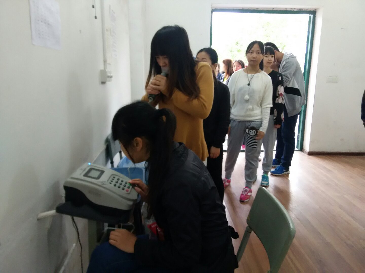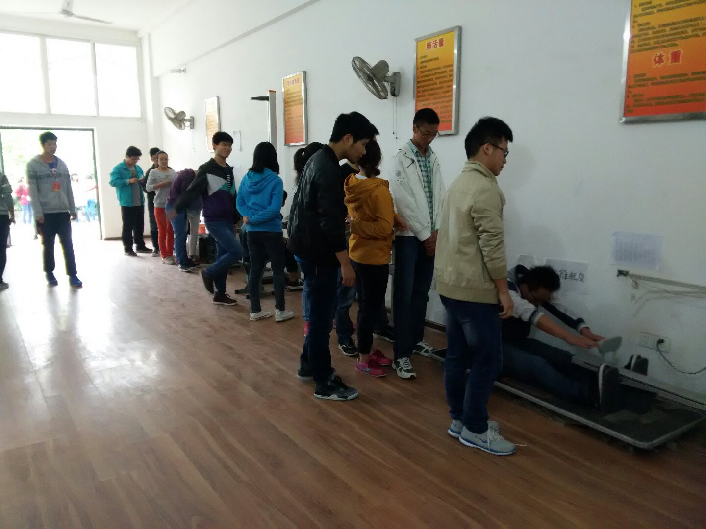 4月11日,来自地资公司及工程公司的同学们在公司体质测试中心参加了测试。本轮测试共有身高、体重、肺活量、坐位体前屈及视力测试项目。整个测试准备充分,计划周密,组织得力。参加测试的同学,在K1体育老师及测试同学的带领下,井然有序的完成了测试项目。