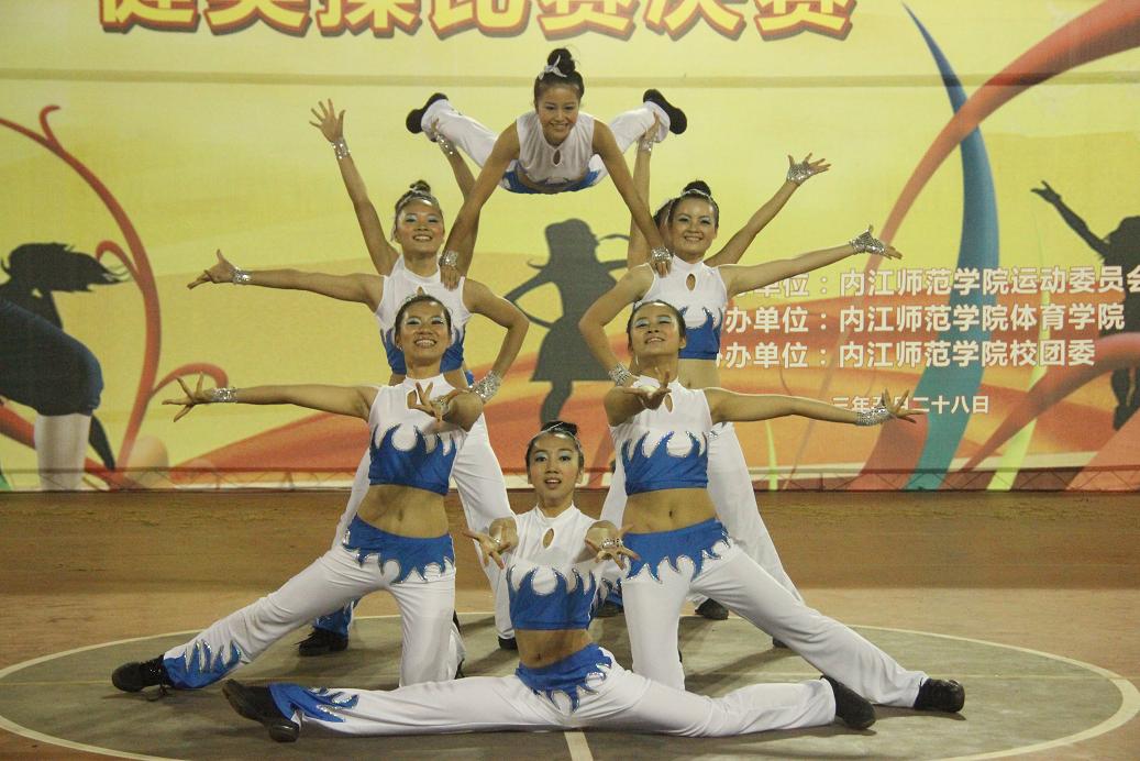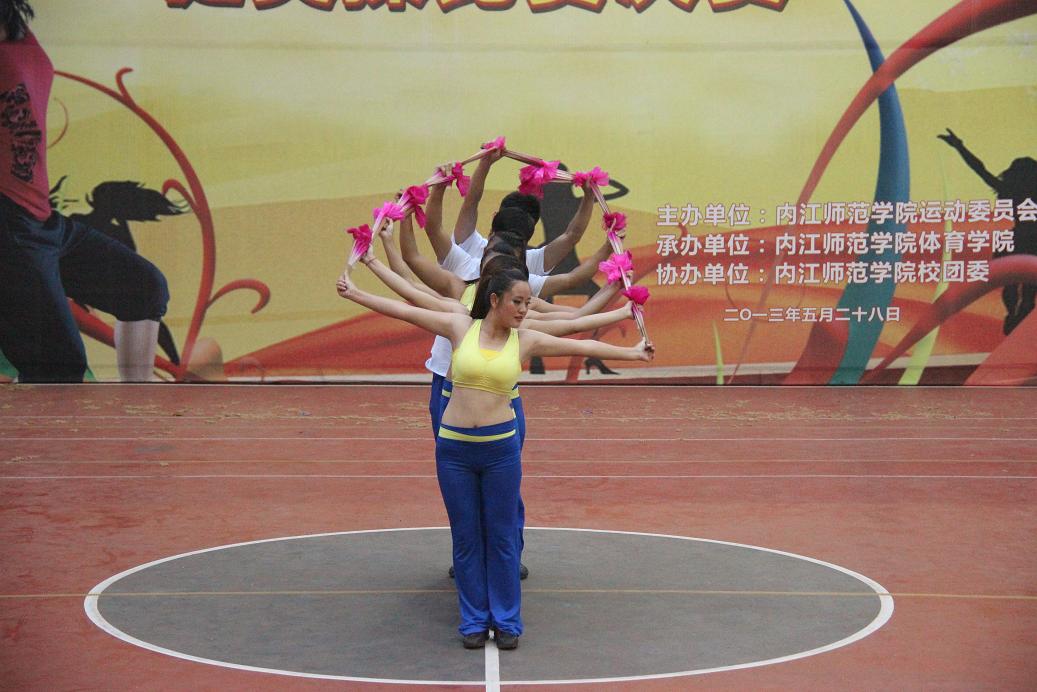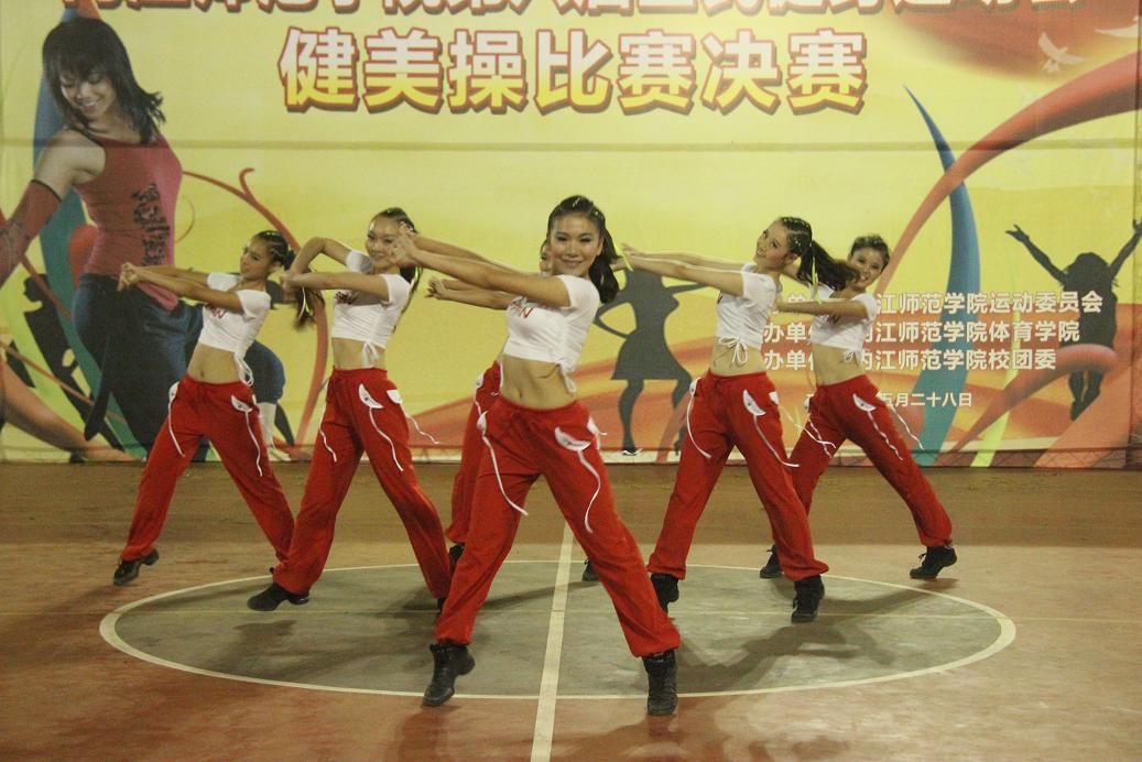 28名健儿带来精彩刺激的技巧啦啦操拉开了本次决赛的帷幕。健儿们呼着“激情似火,舞动青春,创造辉煌”的口号来到赛场上,洪亮的口号声让观众们感受到了K1体育莘莘学子的活力与激情。他们整齐的在舞台中散开,每一个动作都体现了他们扎实的功底;无论是头颈、上肢、胸部、腰部还是下肢等部位的动作都与音乐紧密结合,完成了力量与柔美的交接;更是大秀专业技巧,上演高难度的空中“飞人大战”。甲组女子特色操、自编操、大众六级体操、竞技健美操规定套路、少儿三级、带操等让观众移不开眼睛。