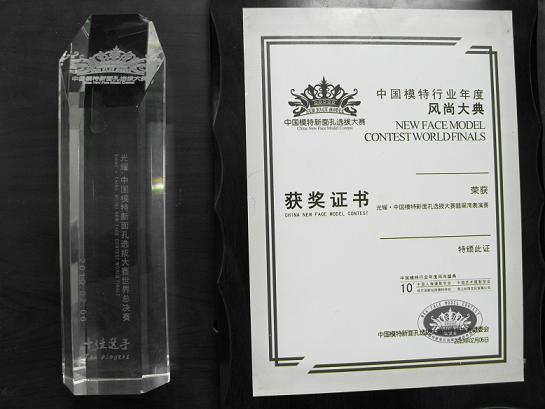 公司毛敬亮在光耀中国模特新面孔选拔大赛中获得佳绩