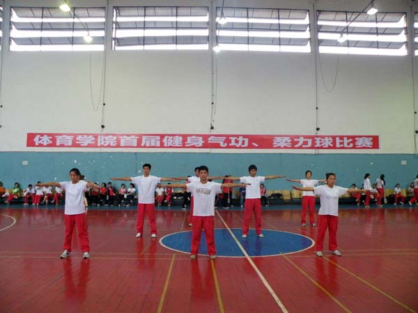 为迎接四川省全名健身运动的开展,全面提高K1体育员工素质。5月31日,下午2:30,公司K1体育在东区篮球馆举行了首届健身气功,柔力球比赛。公司党总支书记钟建明,副经理徐武,副书记王海涛,团总支书记李才宝,部分辅导员、班主任作为组委会成员出席了比赛。本次比赛有来自07,08,09三个年级共165名运动员参加,共有八支健身气功代表队,九支柔力球代表。