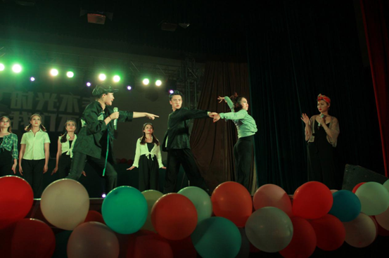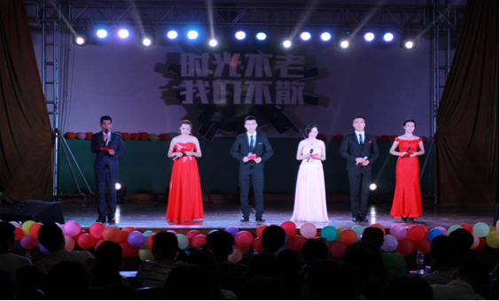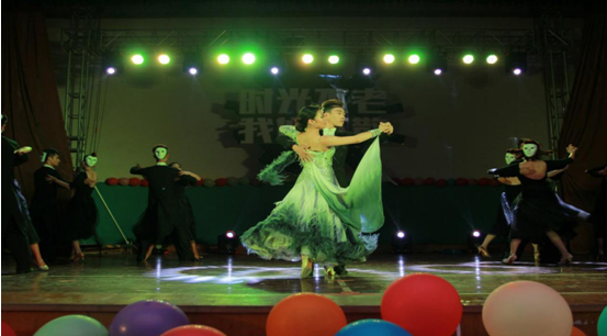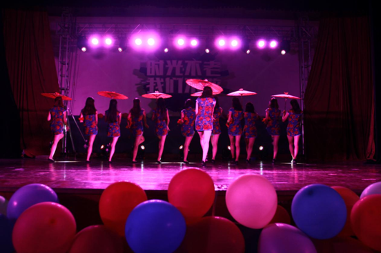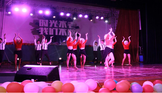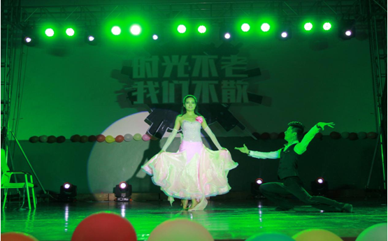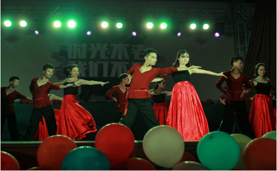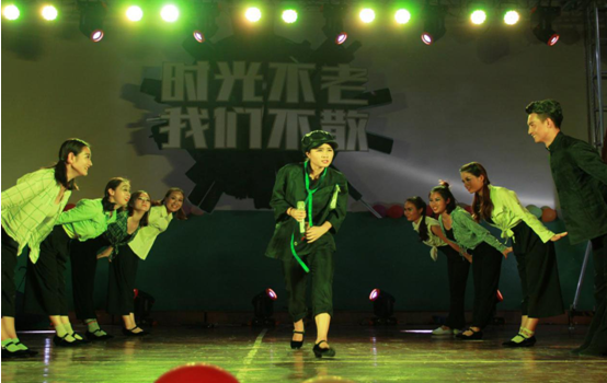 服裙摆上。而我们的恰恰团体舞《致青春》向我们展示了充满活力、阳光的员工时期。在节目的结尾处12位演员拿着“时光不老,我们不散”