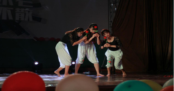 现代舞《石榴女人》是唯一一个与我们专业不相关的舞蹈,但是表演者以自己丰富的情感和投入的演出,向我们展示了在封建时代对生活充满着美好向往,却又不得不饱受沧桑的女人的内心世界。