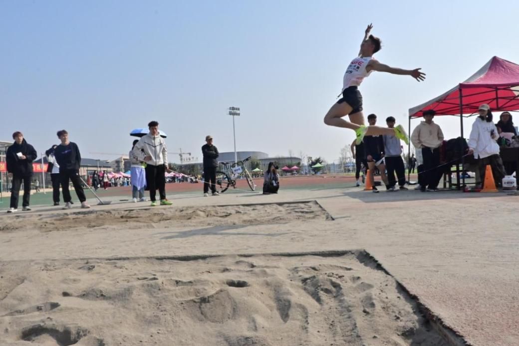 青春是飞扬的助跑,激情是迸发的起跳,艺术是空中的飞步。随着跳远比赛的开始,运动员们全神贯注地凝视前方,双臂有节奏地前后摆动,双脚一蹬,身体瞬间腾空而起。他们毫不畏惧,全力冲刺,完成每一次跳跃。
