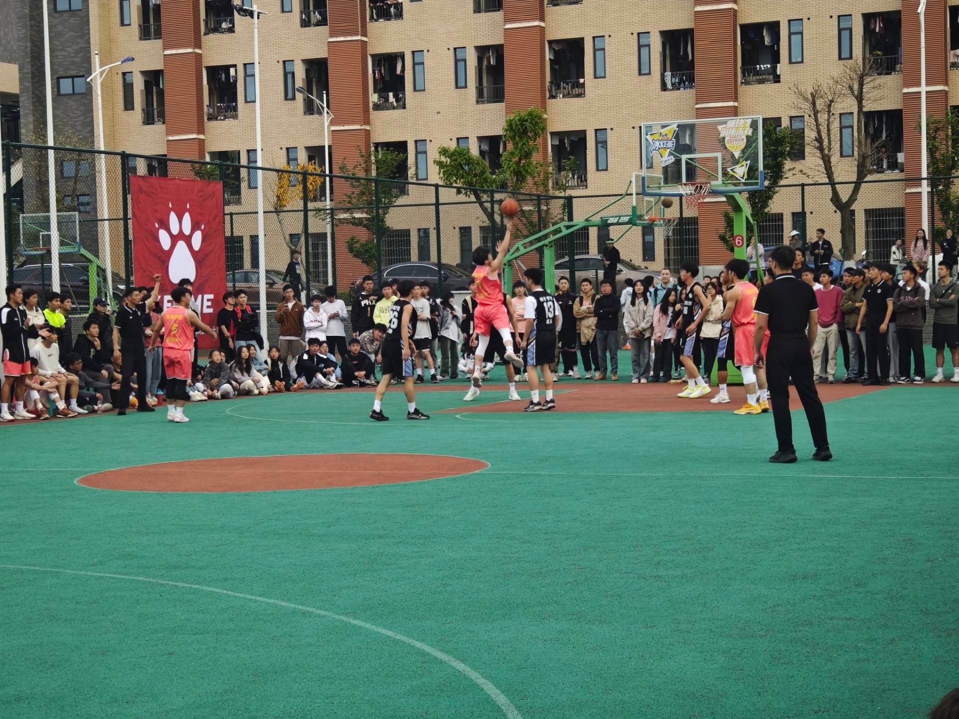 随着开幕式的结束,揭幕赛也拉开了序幕,23级1班与21级5班开启了本次“超级四月杯”的首场比赛。观众的呐喊、队友的期盼、朋友的关切,为这些意气风发的少年带来无限的动力。矫健的步伐、华丽的运球、紧密的防守是对团队合作最完美的诠释。