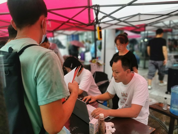 大雨倾盆,冰冷的雨水依旧浇不灭志愿者们迎接新生的热情,9月4日早上7:30,所有志愿者一切准备就绪,正式开始迎新。新生进校时一切按照公司要求完成新生报道流程,进校前工作人员对新生进行消毒、体温测量、扫码等一系列工作,报到处志愿者们耐心地为新生办理入学手续,公司党总支书记李才宝、党总支副书记刘鹏以及全体辅导员一直坚守在接待点为大一新生们答疑解惑。