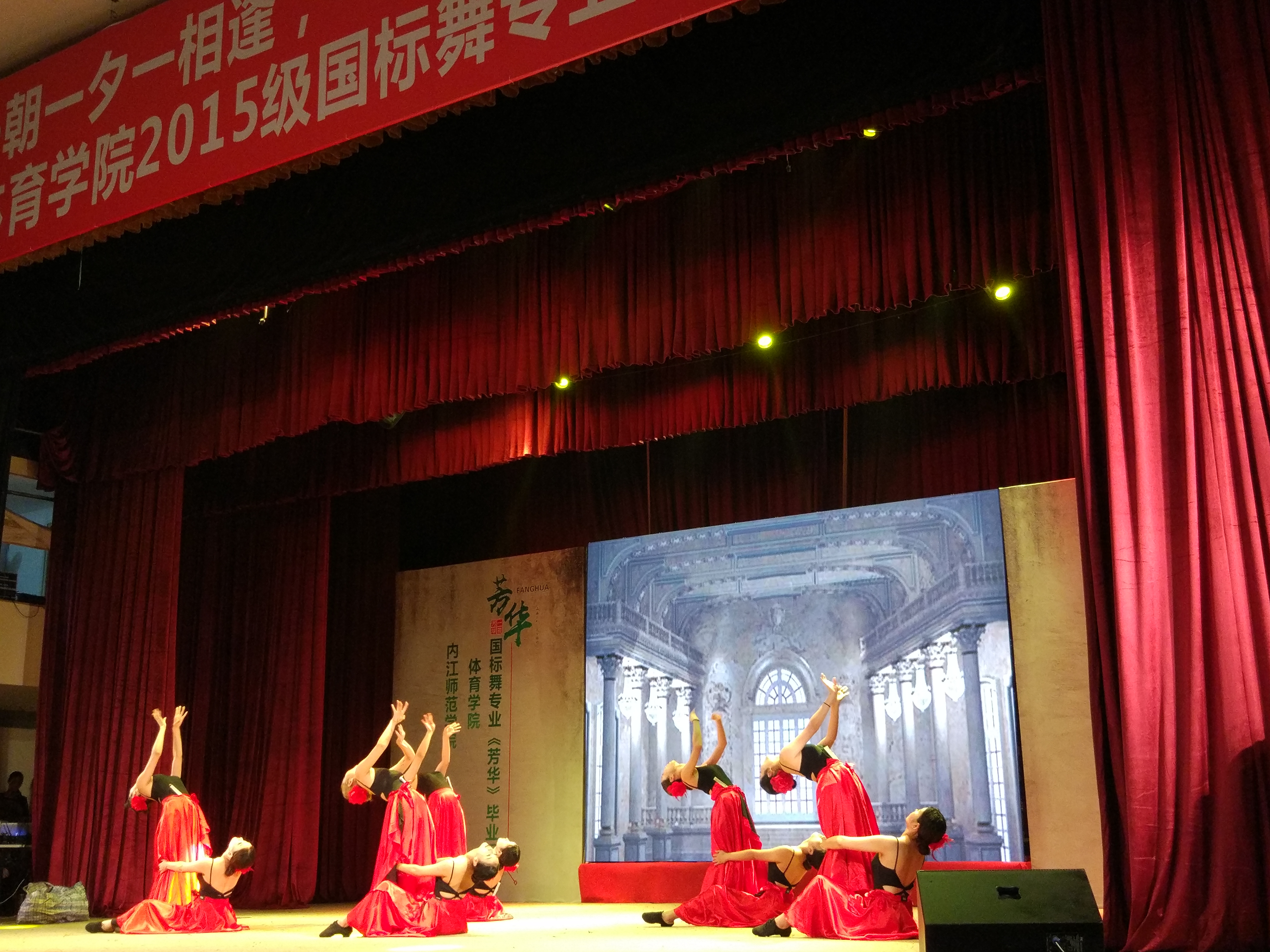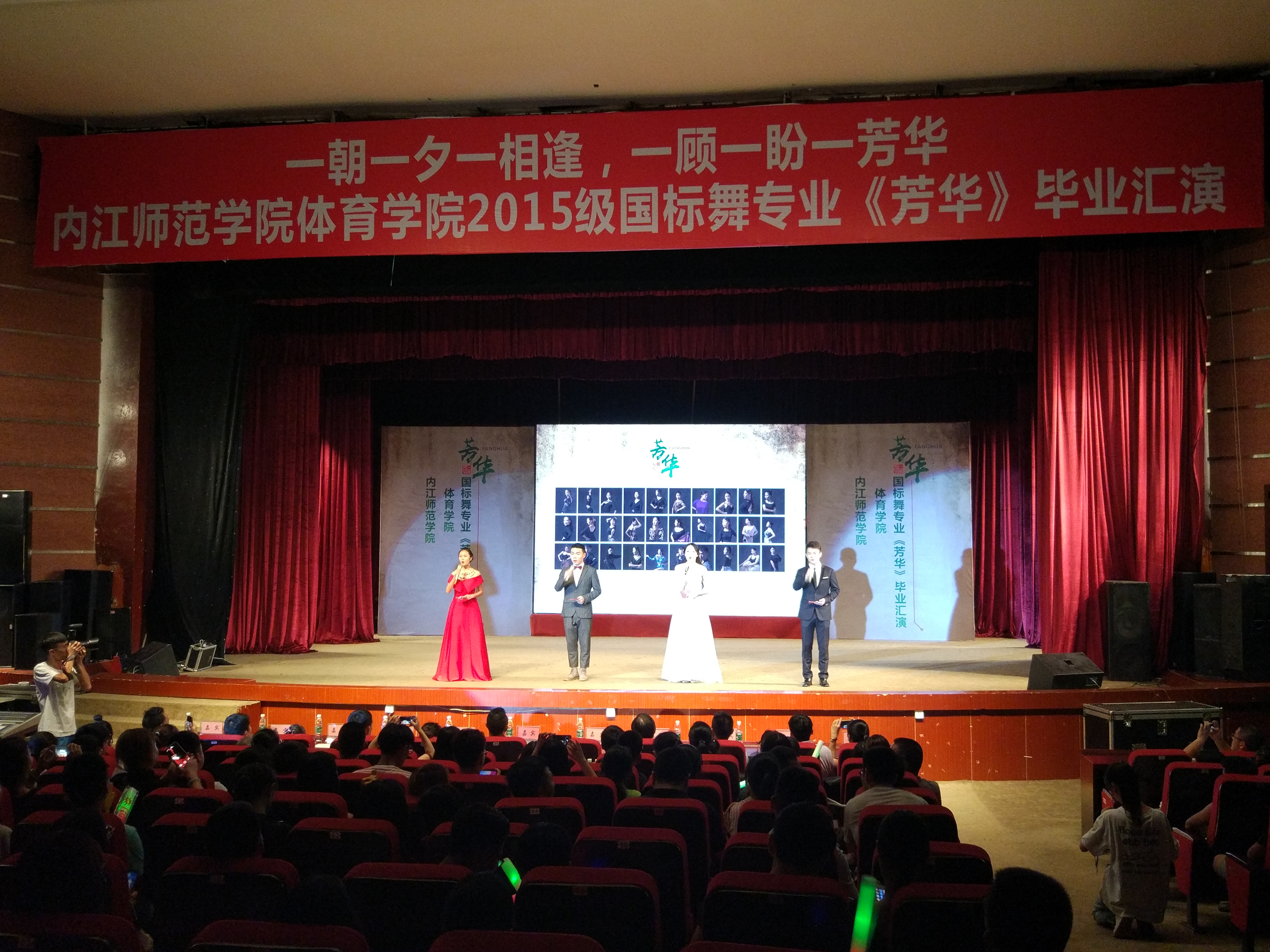 一支活力四射的舞蹈为本次晚会拉开了帷幕,首先由谭副经理为本次活动致辞,谭副经理主要为本次晚会的负责人提出来感谢,他说到:感谢15级3班同学们为本次活动能顺利演出而付出的为期三个月的辛苦准备,感谢体育舞蹈专业老师对同学们的细心指导,感谢在场所有同学对本次活动的支持,并希望本次活动能取得圆满成功。毕业晚会《芳华》正式开始。