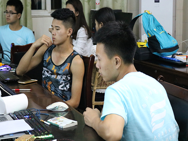 稍作整顿后,陈成老师带领着志愿者们参观了公司的教室、办公室以及员工宿舍,大致了解了公司的教学设施状况。随后在公司会议室进行了简短的会议,会议主要是对此次支教活动进行全方面的安排。由于此次支教对象比较特殊,为初中员工和即将进入初中的员工,全封闭式教学,员工在此期间不能离开公司,所以针对这个情况,决定实行分层管理的制度,以维持活动的正常进行以及保障活动安全开展。同时,对开设的课程进行了适当的调整,根据志愿者们的专业与特长,主要开设了英语、数学、地理等文化课,以及书法、手工、篮球、足球等体育课,以此来丰富员工们的暑期生活。