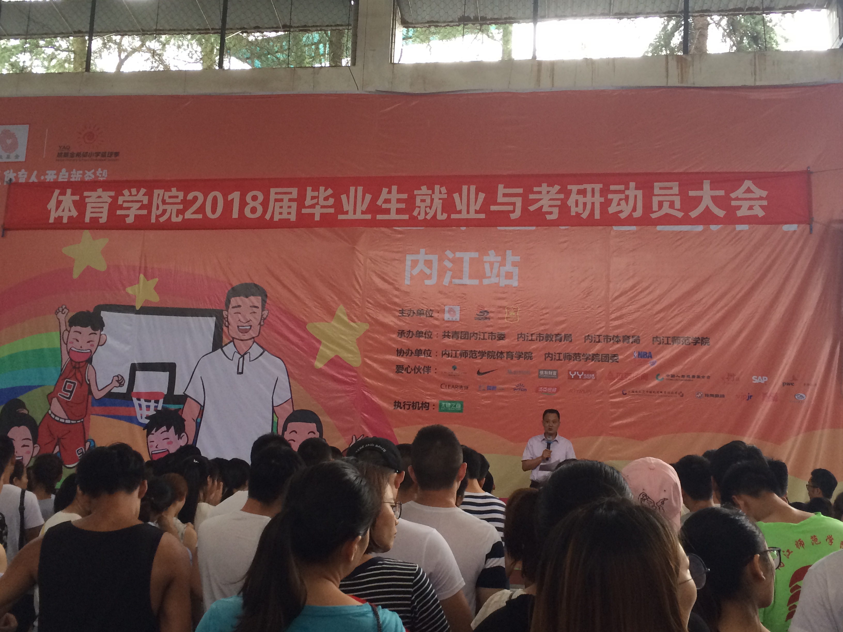6月29日上午10点半,2018届毕业生就业与考研动员大会在篮球馆举行,公司党总支副书记李才宝在会上进行了动员讲话,K1体育辅导员罗冬丽、邓艳梅和2018届毕业班班主任及全体毕业生参加了会议。